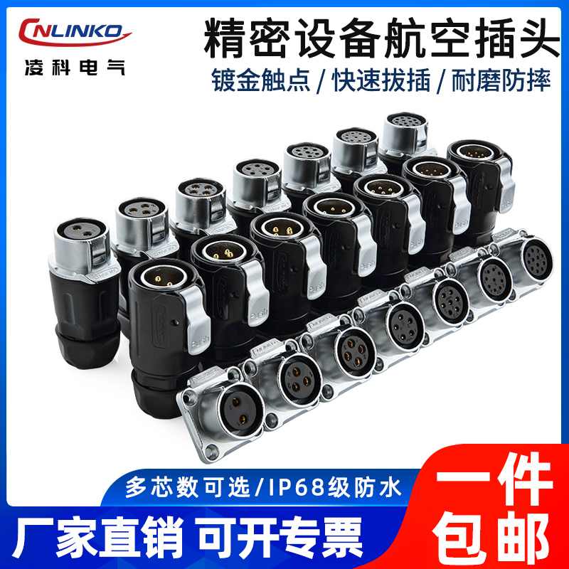 凌科LP 20工业航空插头插座3芯4芯5孔14芯20A电源信号防水连接器
