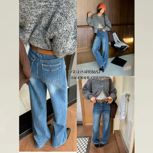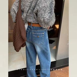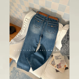 微喇牛仔裤 王家有鱼 新款 2025秋季 中高腰不贴腿辣妹女 古早蓝灰