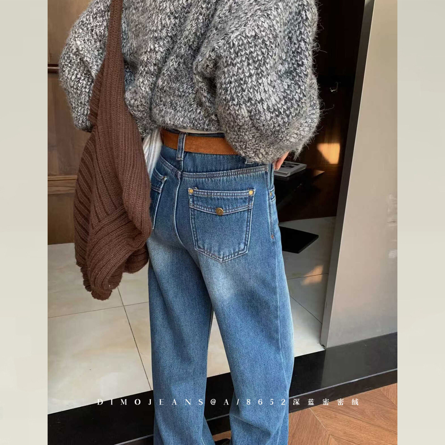 逸阳高腰深蓝不掉色牛仔直筒裤 女加绒2025秋冬加厚宽松显瘦烟管裤