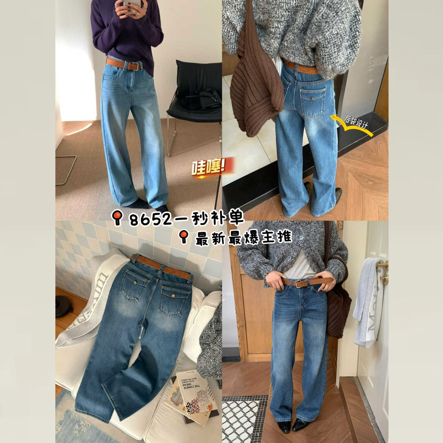 特别菠萝纹纹理微宽松锥形牛仔长裤 搭配 适合四季 几立