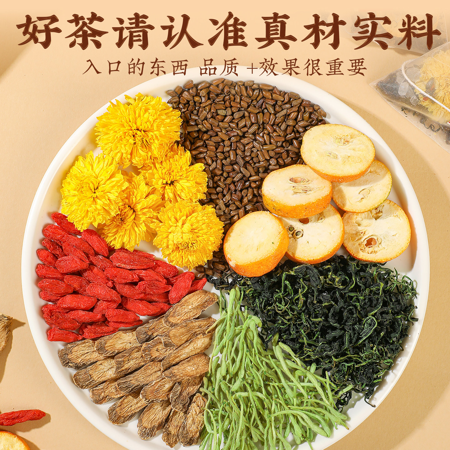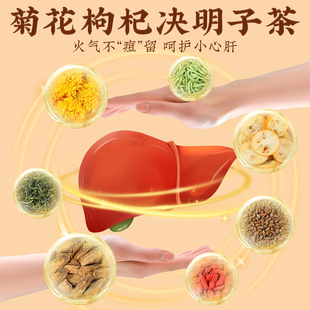 菊花枸杞决明子茶牛蒡根金银花护肝明目茶火清去熬夜养生茶泡水喝