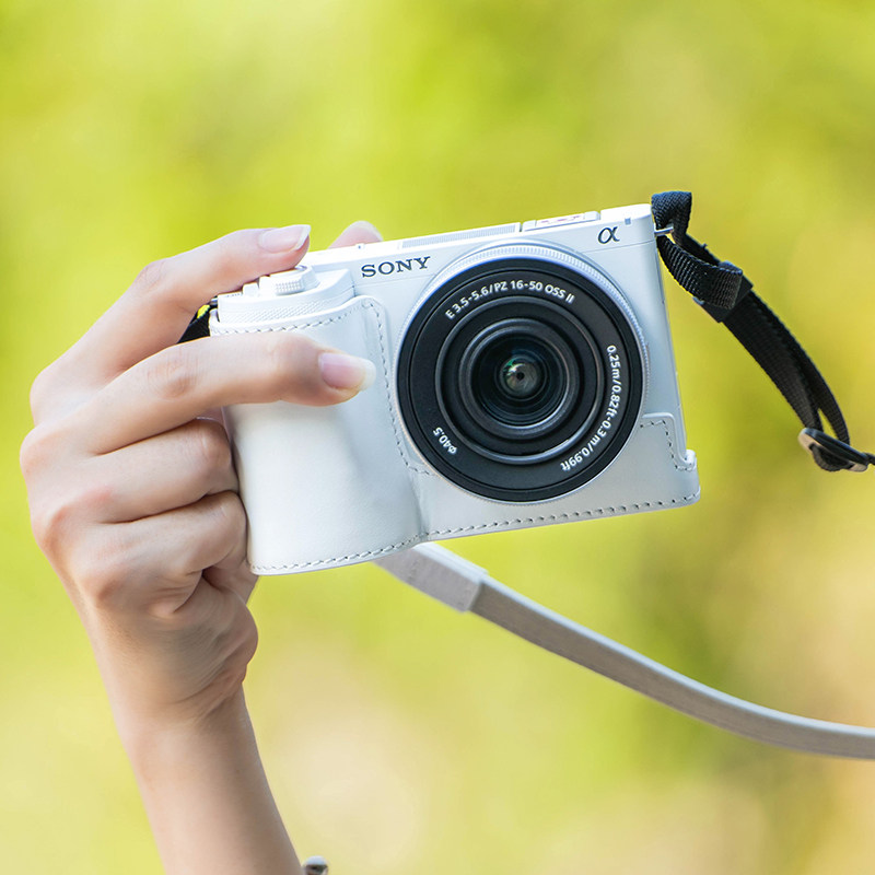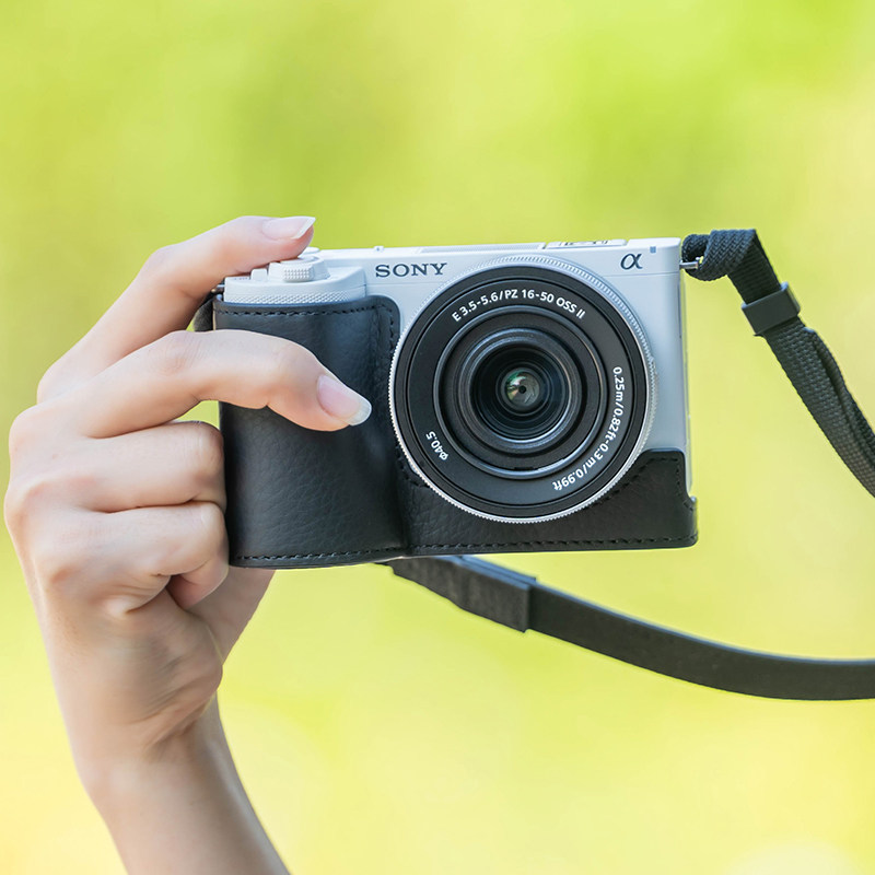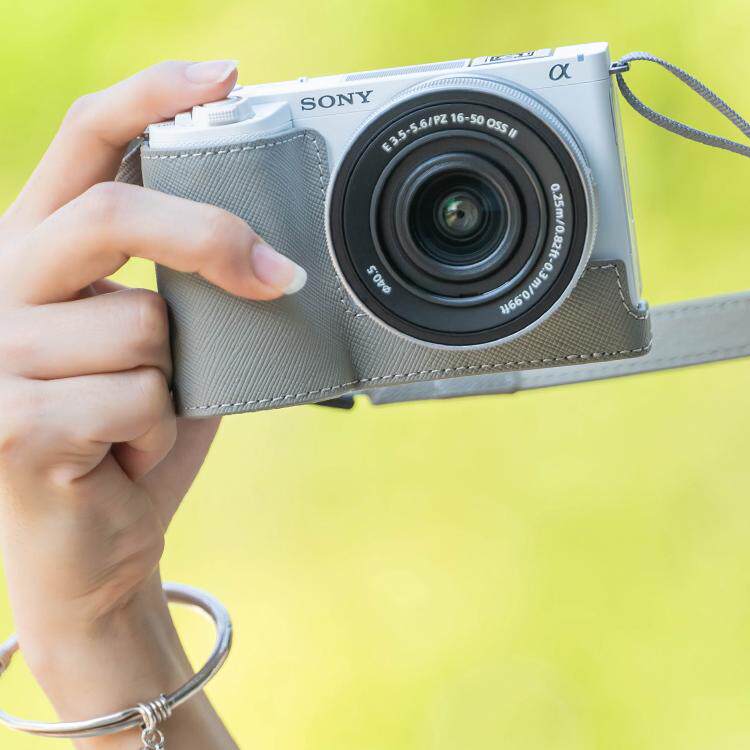 摄侣适用索尼zve10二代保护套a7c2相机包a7m4皮套zv1fm2底座包a6700相机套A7C皮壳zve10半套A7CRa7r5真皮配件