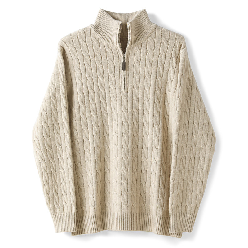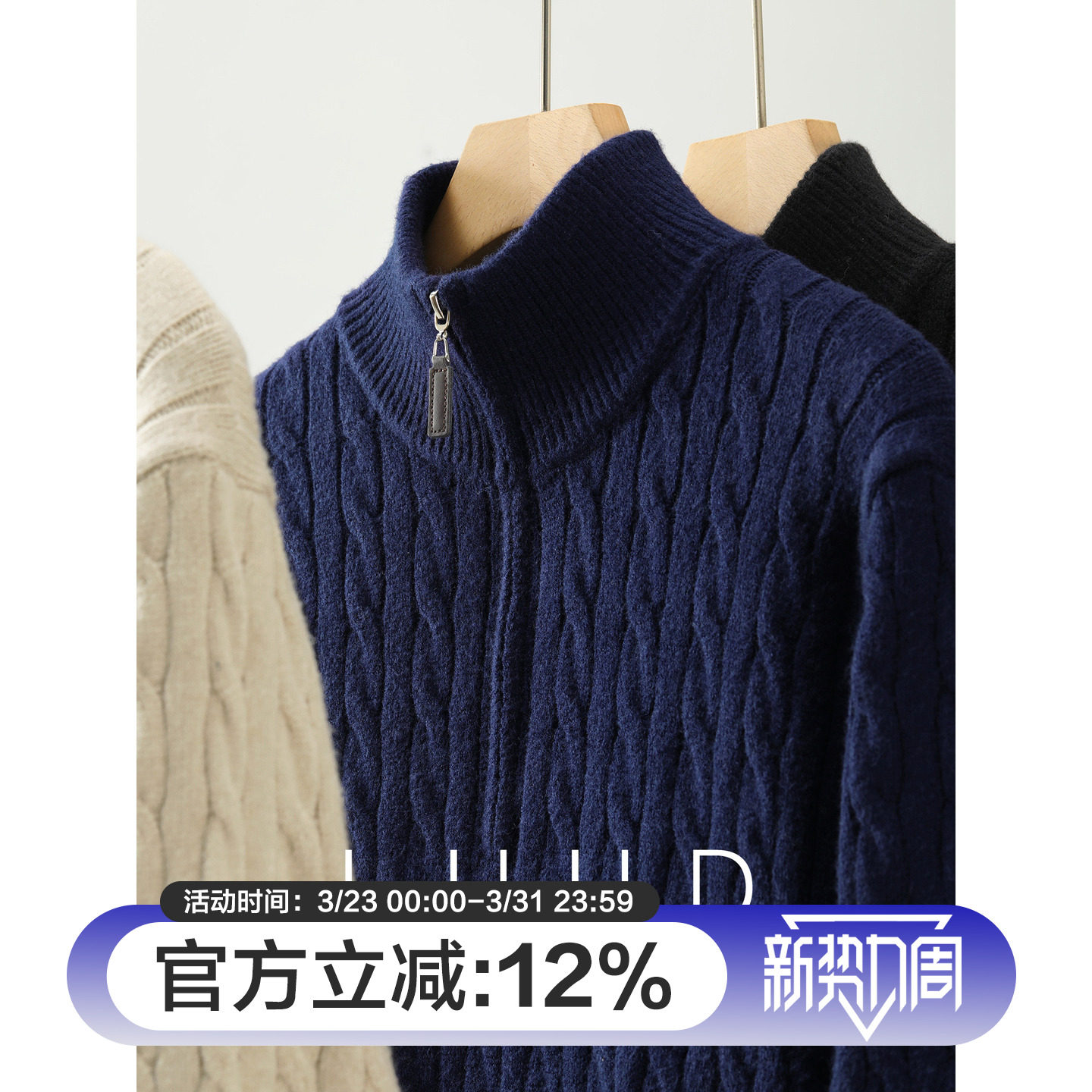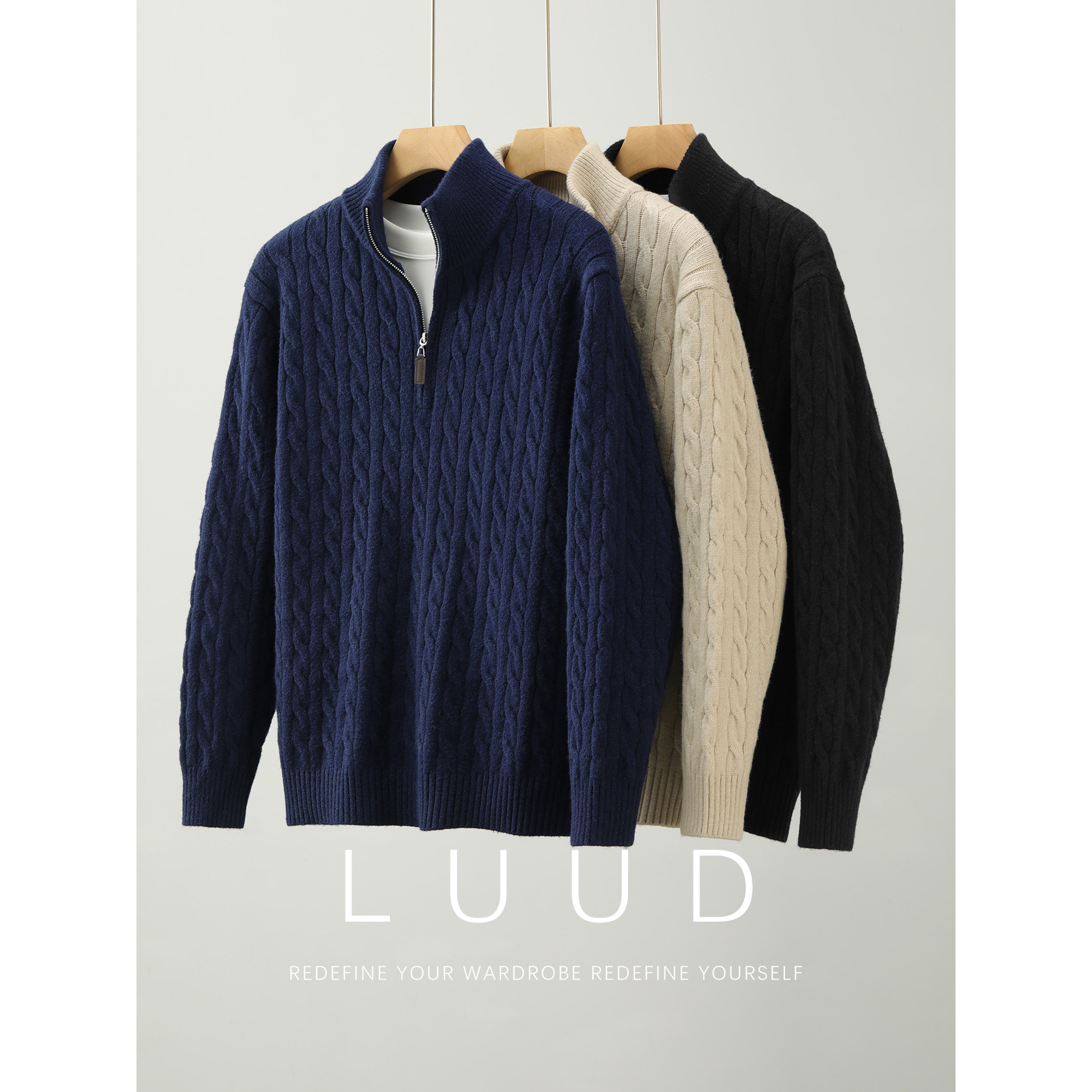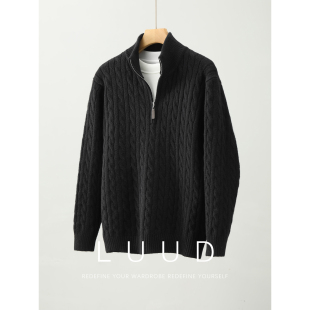 LUUD 立领纯色麻花肌理提花毛衣重磅半拉链秋冬潮男文艺范毛线衣