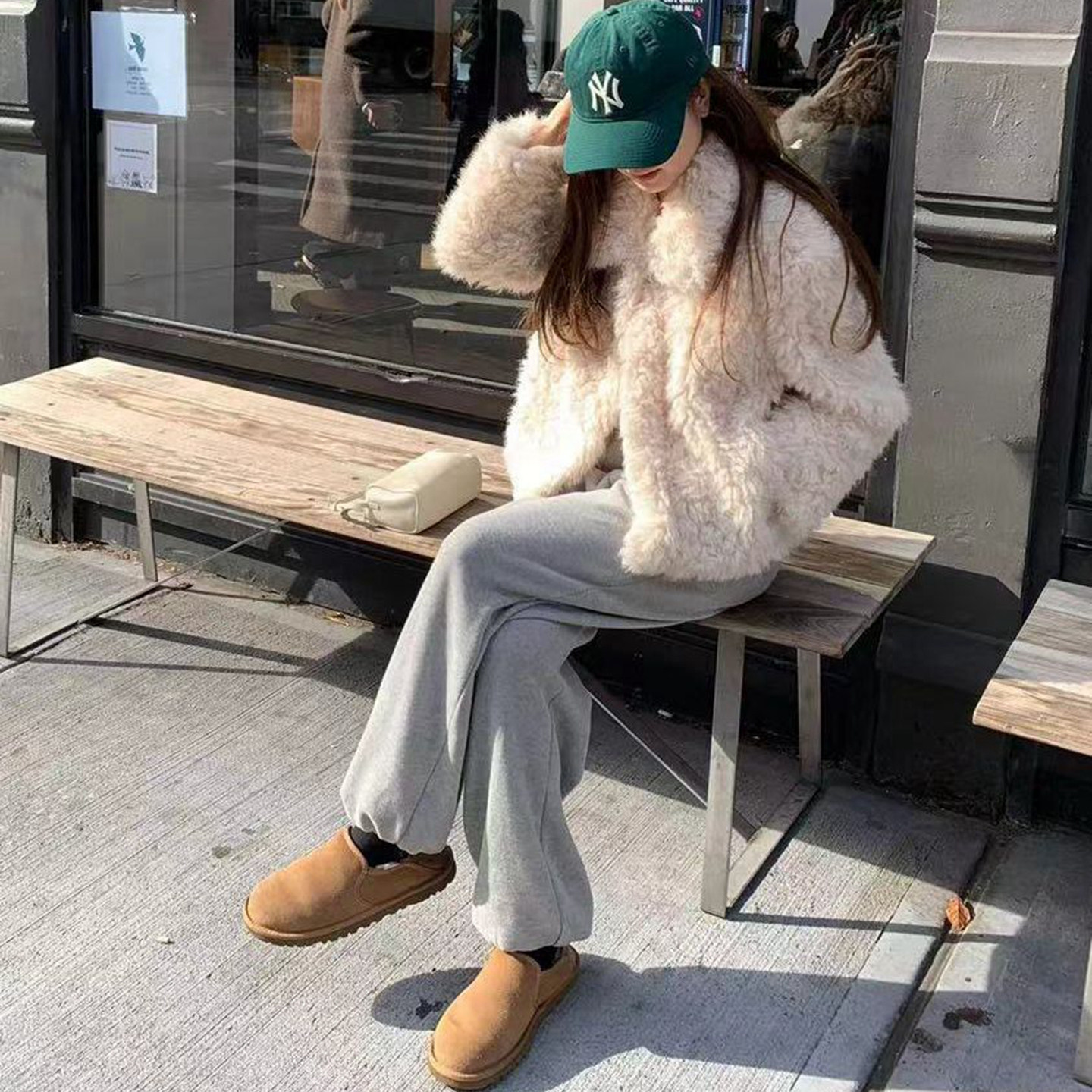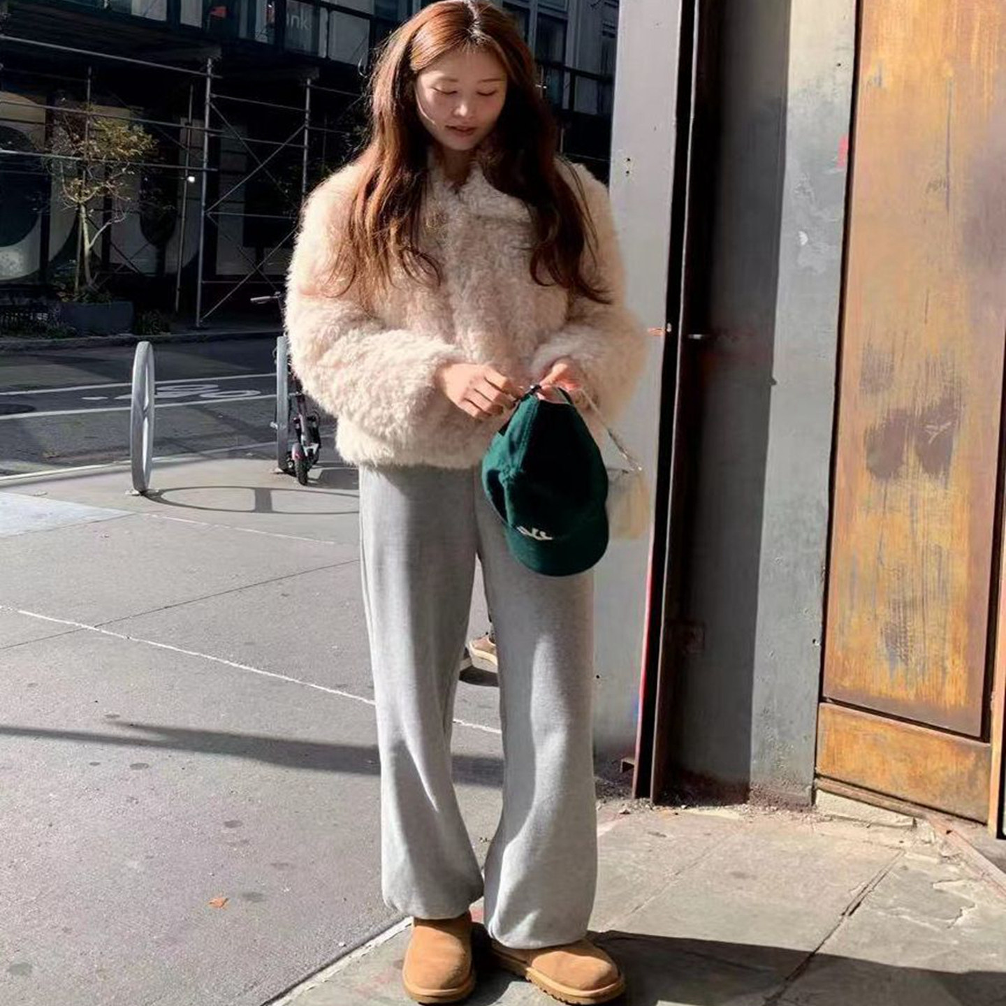 简约松紧腰加绒可束脚休闲裤 时尚 OUNCE2025冬季 现韩国东大门代购