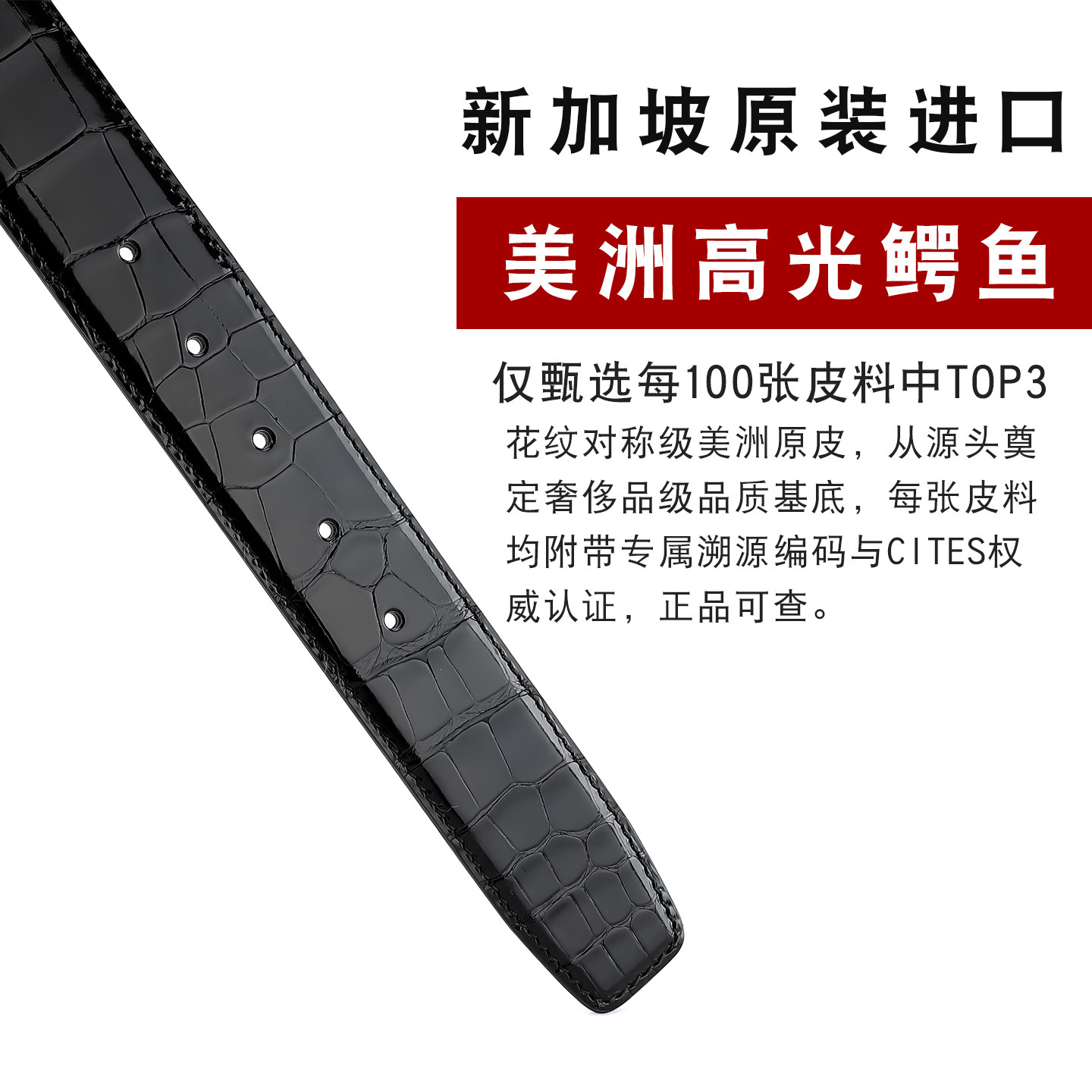 莫仕顿进口美洲湾鳄高光鳄鱼皮皮带男士 商务高端送礼真鳄鱼腰带