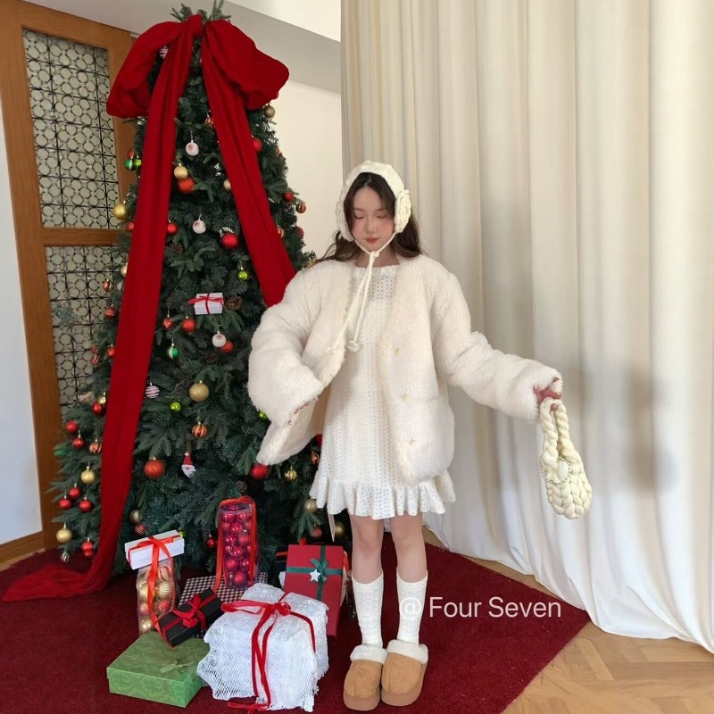 百搭保暖配围巾软糯牧羊卷V领系扣外套 2025原创正版 FOUR SEVEN