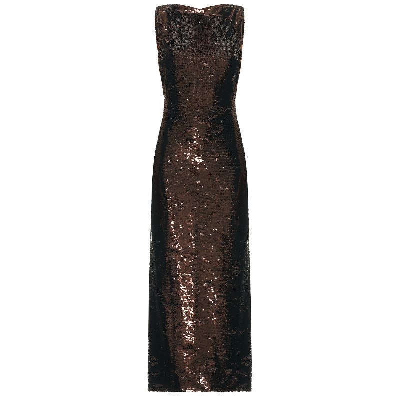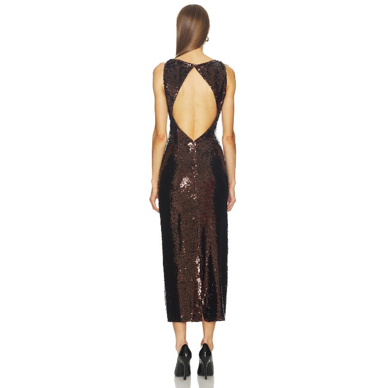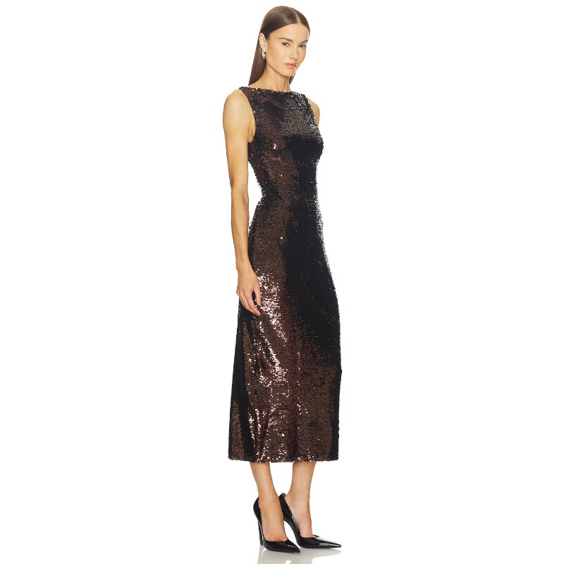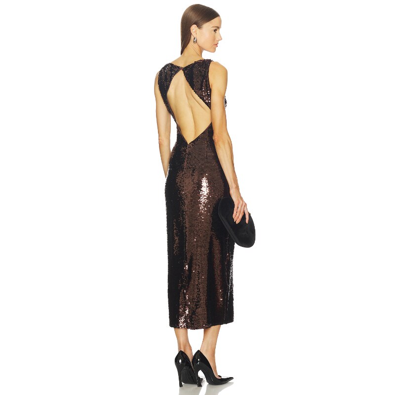SRG连衣裙巧克力色晚宴风无袖 长裙REVOLVE 亮片修身
