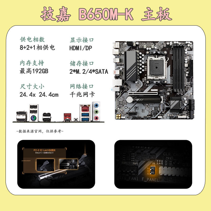 9600X 技嘉B650M 7500F DDR5主板支持AMD 9700X处理器