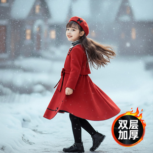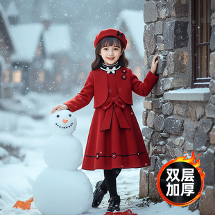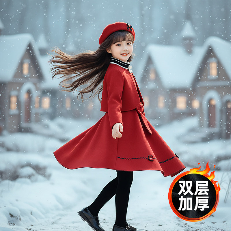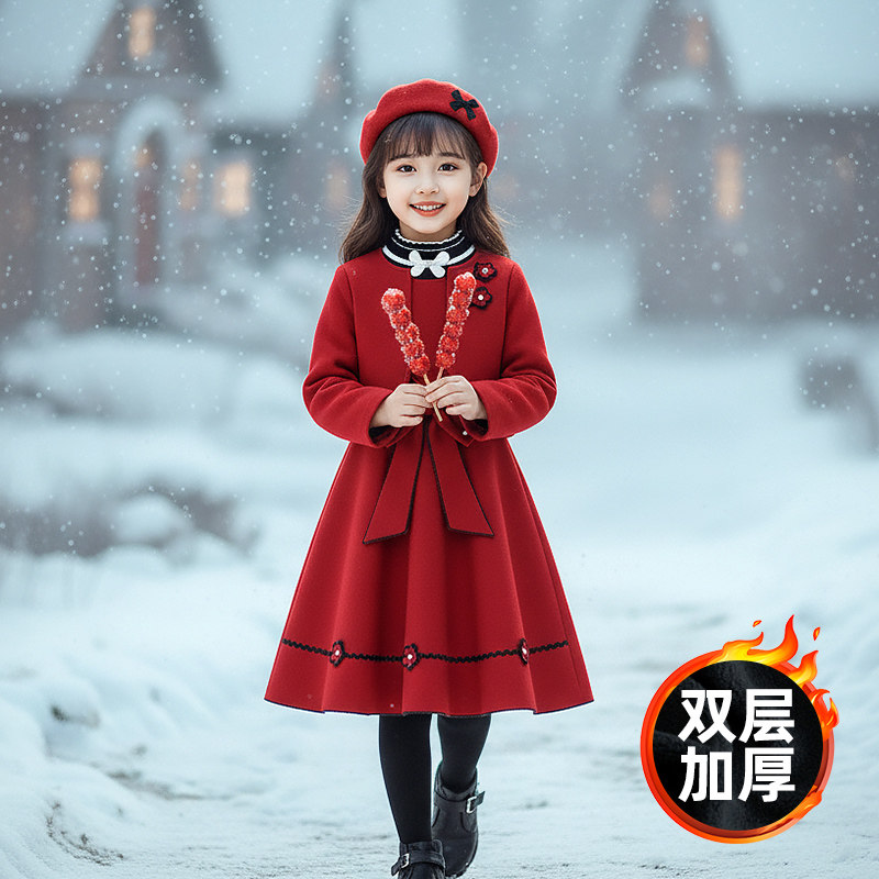 甜美新年小黑裙 新款 妖精 口袋樱桃假两件宽松连衣裙女2025年冬季