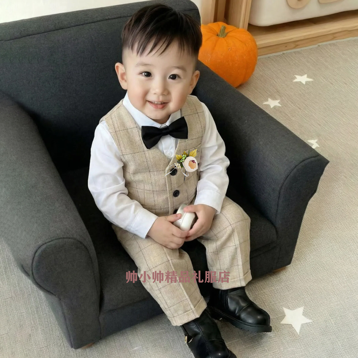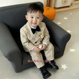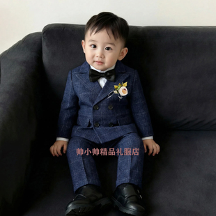 男宝宝周岁礼服秋冬男童小西装 帅气花童婚礼服儿童生日宴西服 套装