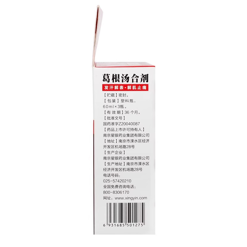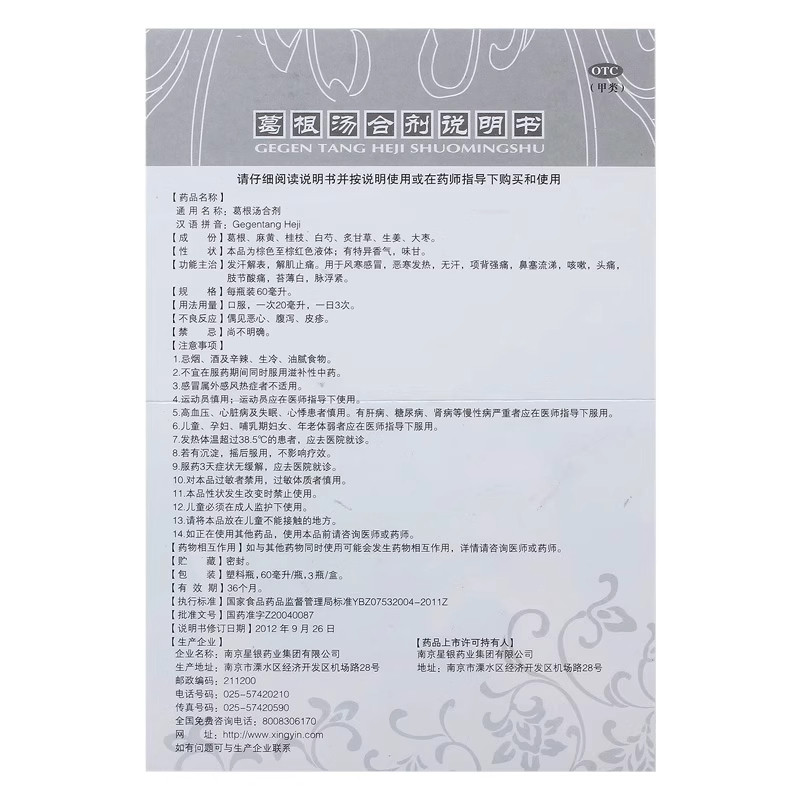 星银葛根汤合剂60ml 3瓶风寒感冒鼻塞流涕发热咳嗽头痛肢节酸痛Z
