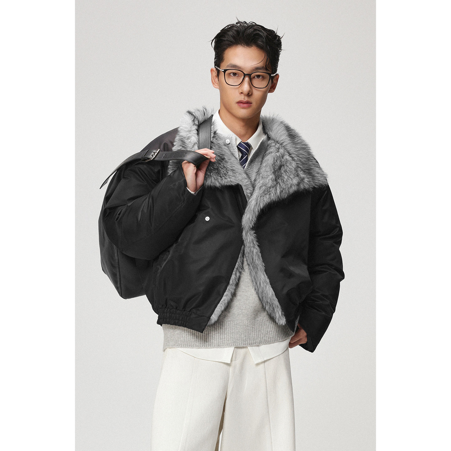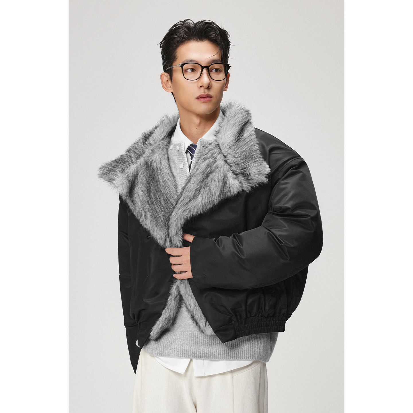 男士 棉衣加厚夹棉冬装 座山雕外套 新款 w2x毛呢领棉服男高级感冬季