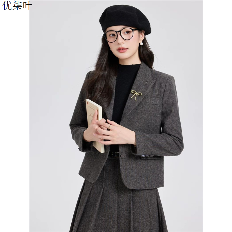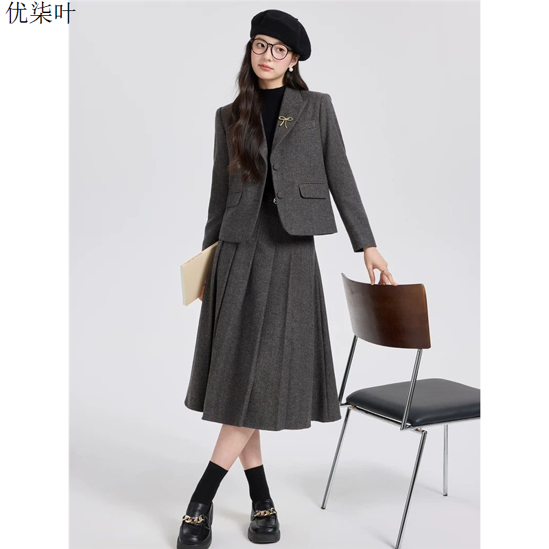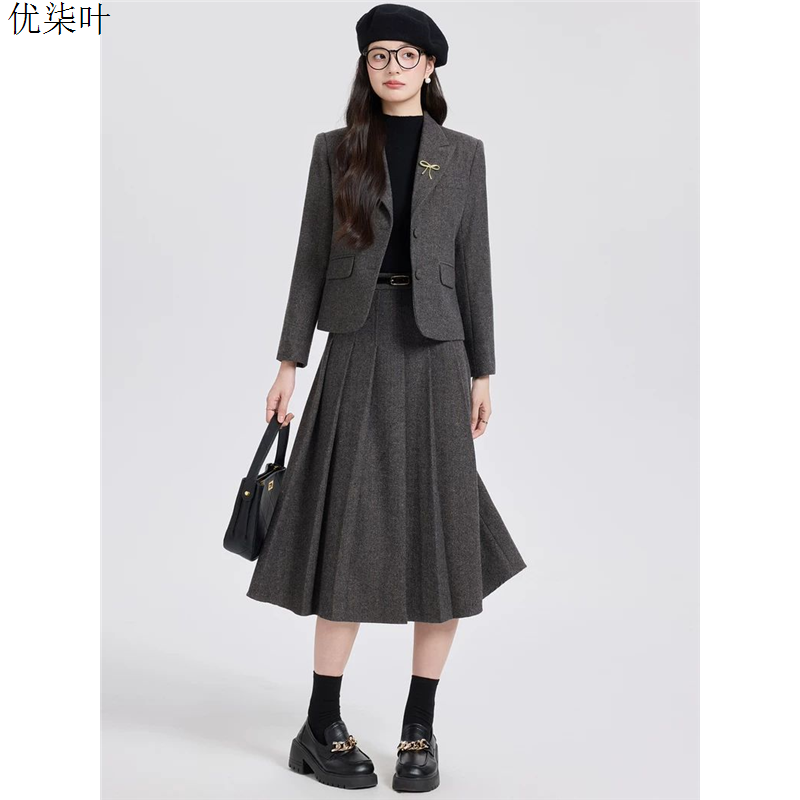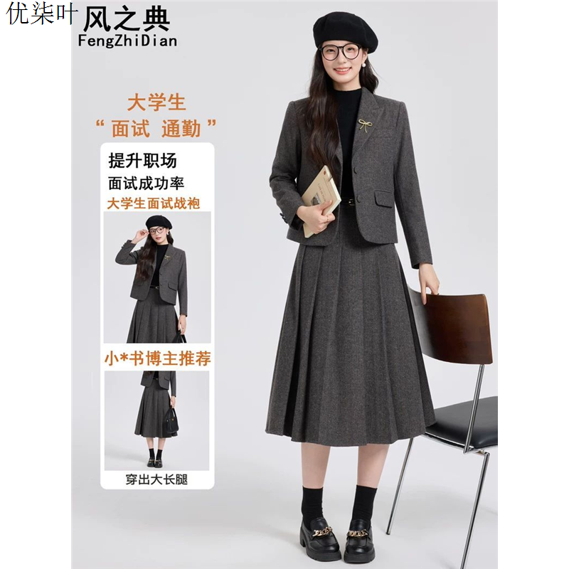 收腰显瘦四件套装 安妮不火英伦学院风夹棉呢料西装 套组女微胖大码