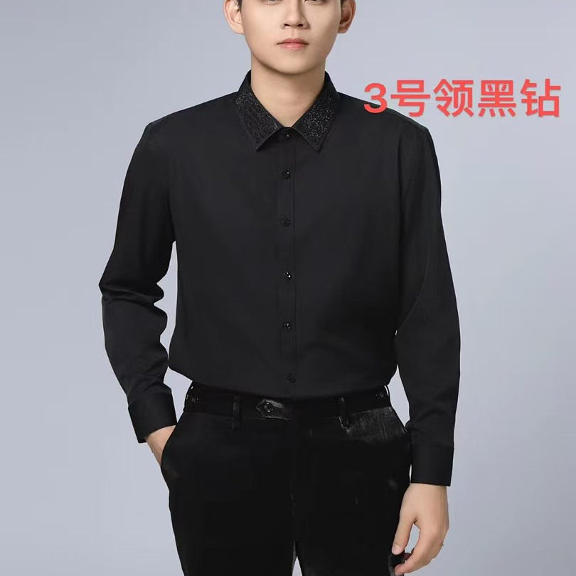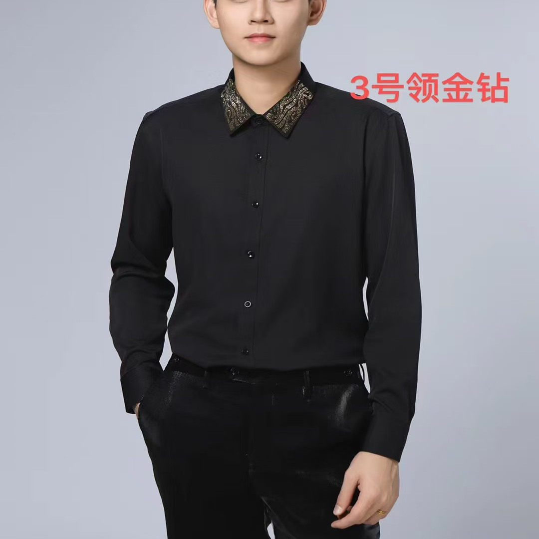 歌手烫钻 衬衫 男士 黑色烫钻礼服演出服装