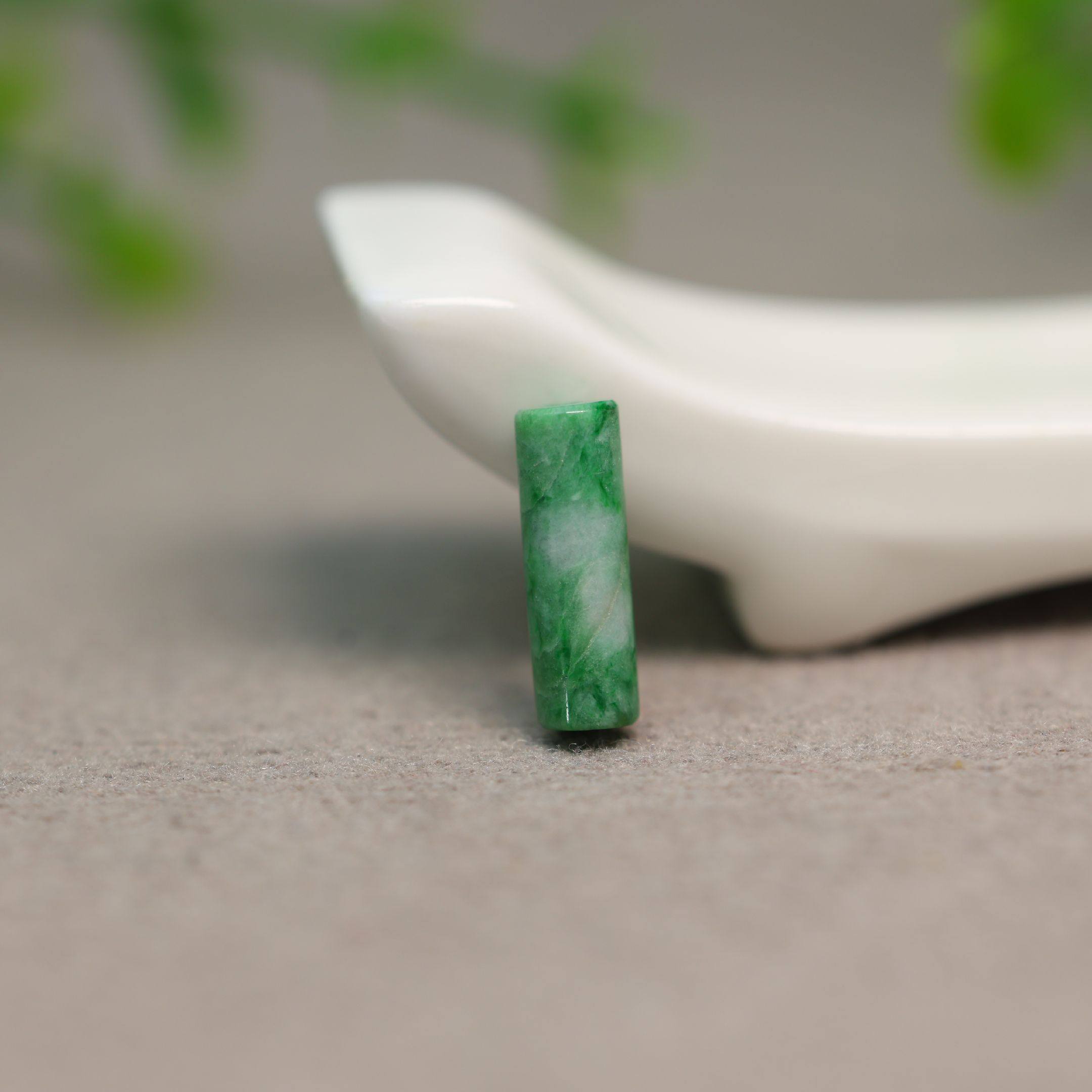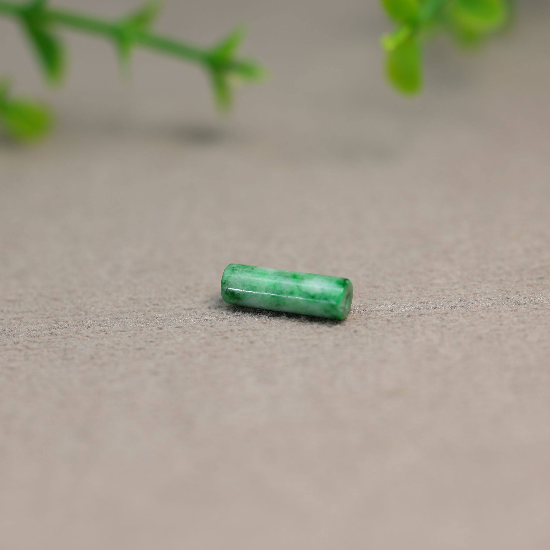 DIY珠串配件 K527飘辣绿缅甸天然A货翡翠圆柱形管珠柱条长桶珠