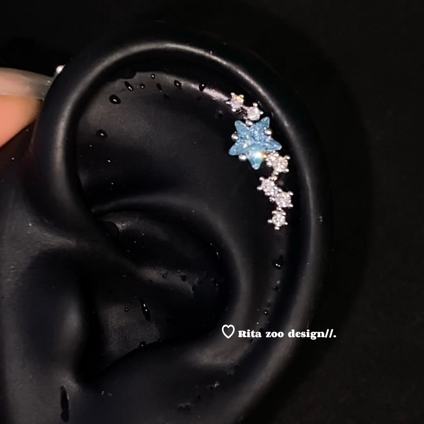 蓝色冰晶雪花耳钉女钛合金养耳洞耳骨钉高级感耳蜗钉耳环钛钢耳饰