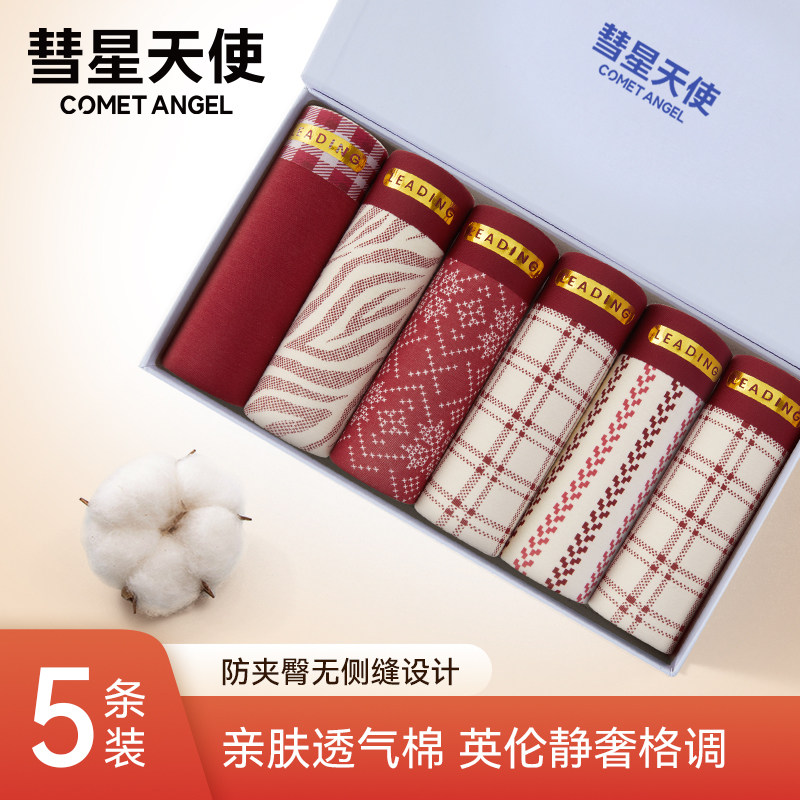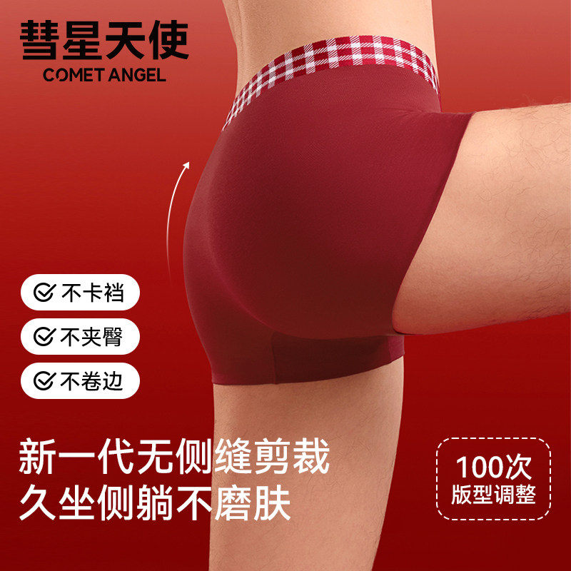 纯棉大红色结婚礼物属蛇四角短裤 男生平角裤 内裤 恒源祥本命年男士