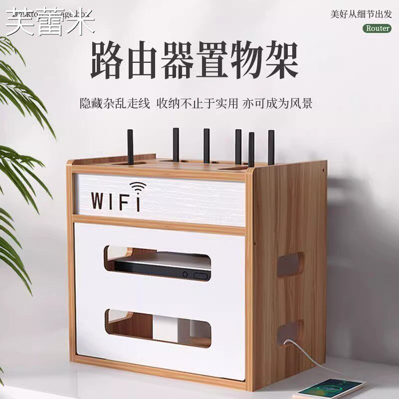 芙蕾米光猫路由器收纳盒轻奢高档大容量电视机顶盒多层wifi数据线置物架床笠拉车