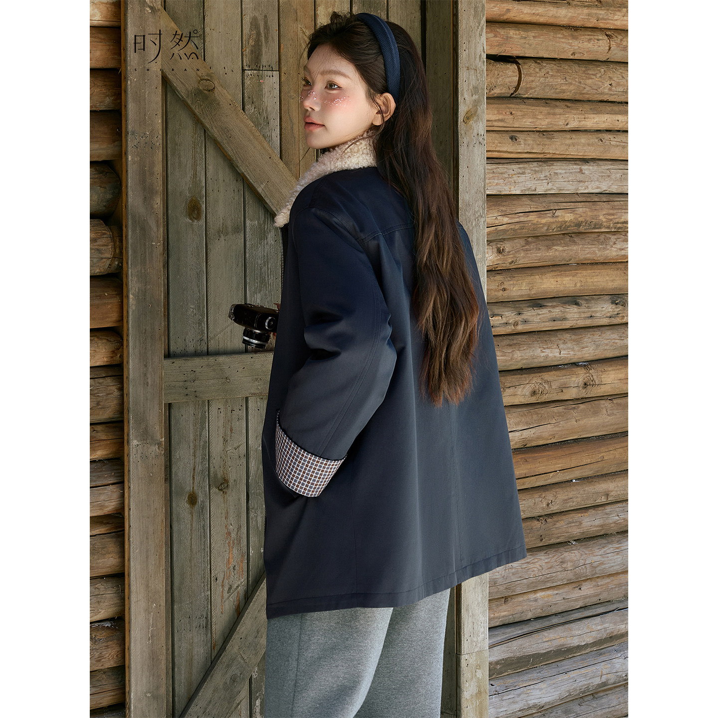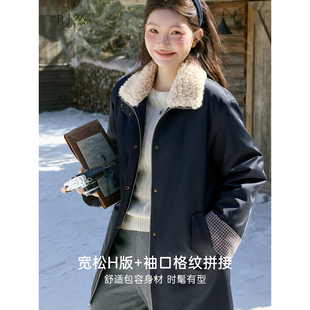 复古菱形格夹棉外套200斤 女装 胖mm冬季 巴恩翻领棉服木子理想大码