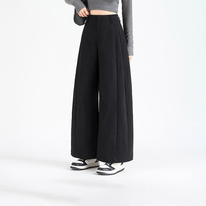 百搭休闲 立体分割显瘦秋冬女款 热风女士弯刀裤 简约气质宽松阔腿裤
