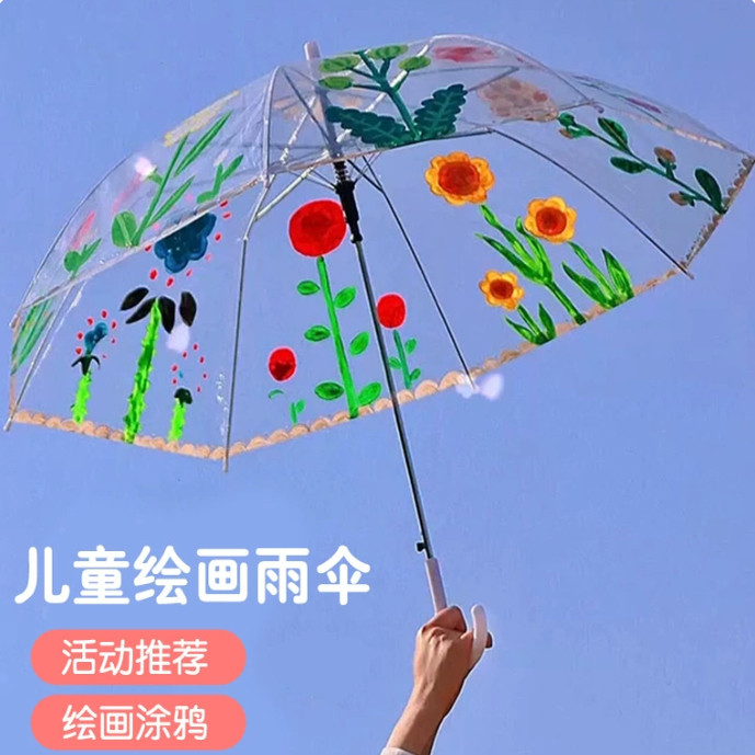一次性透明雨伞婚礼拍照儿童diy手绘舞蹈道具长柄白色透明旅游伞