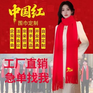 中国红大红色围巾定制logo印字过寿公司年会同学聚会开业庆典活动