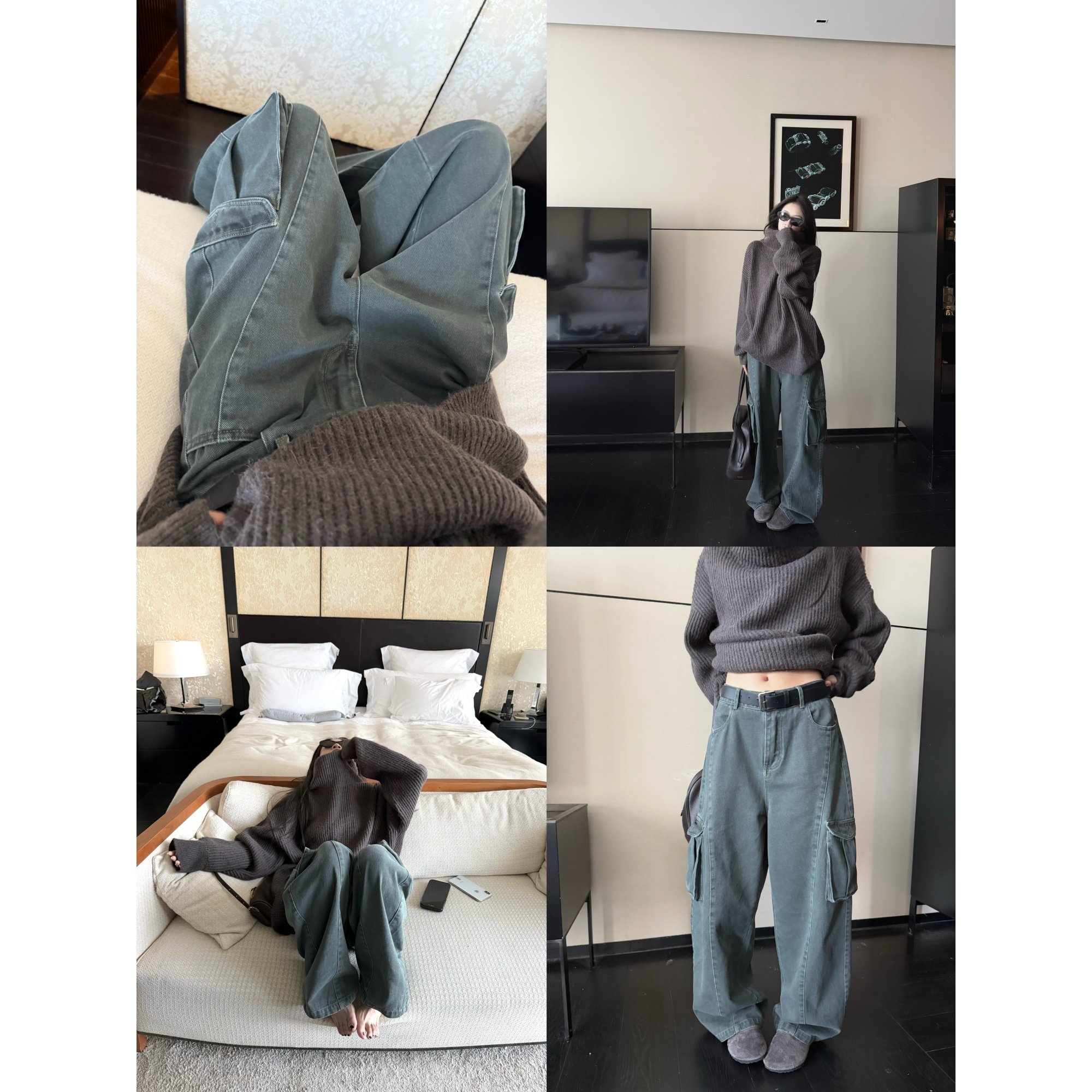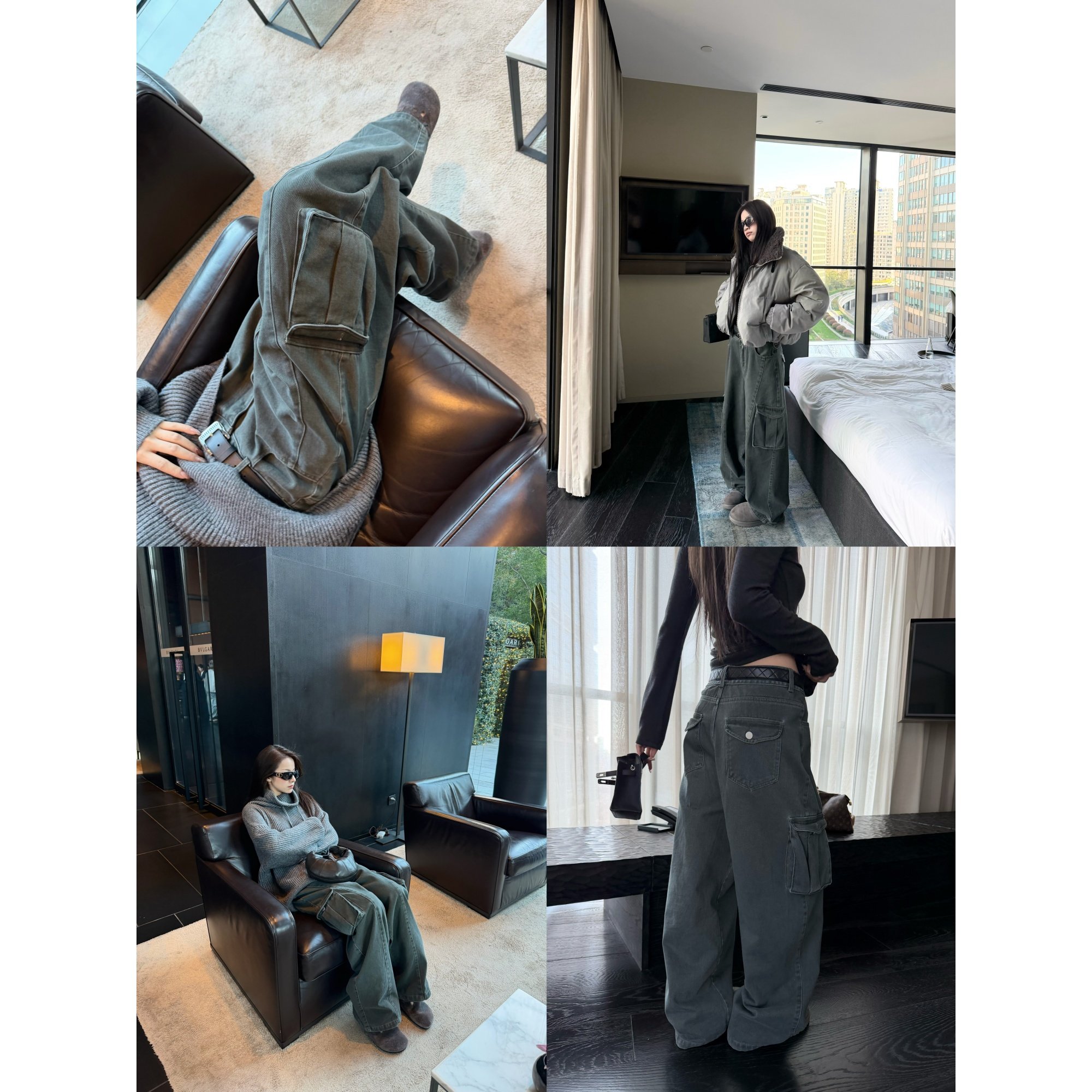 长裤 superniniyy 裤 私服重工立拼接定染大口袋加厚工装 酷酷Girl