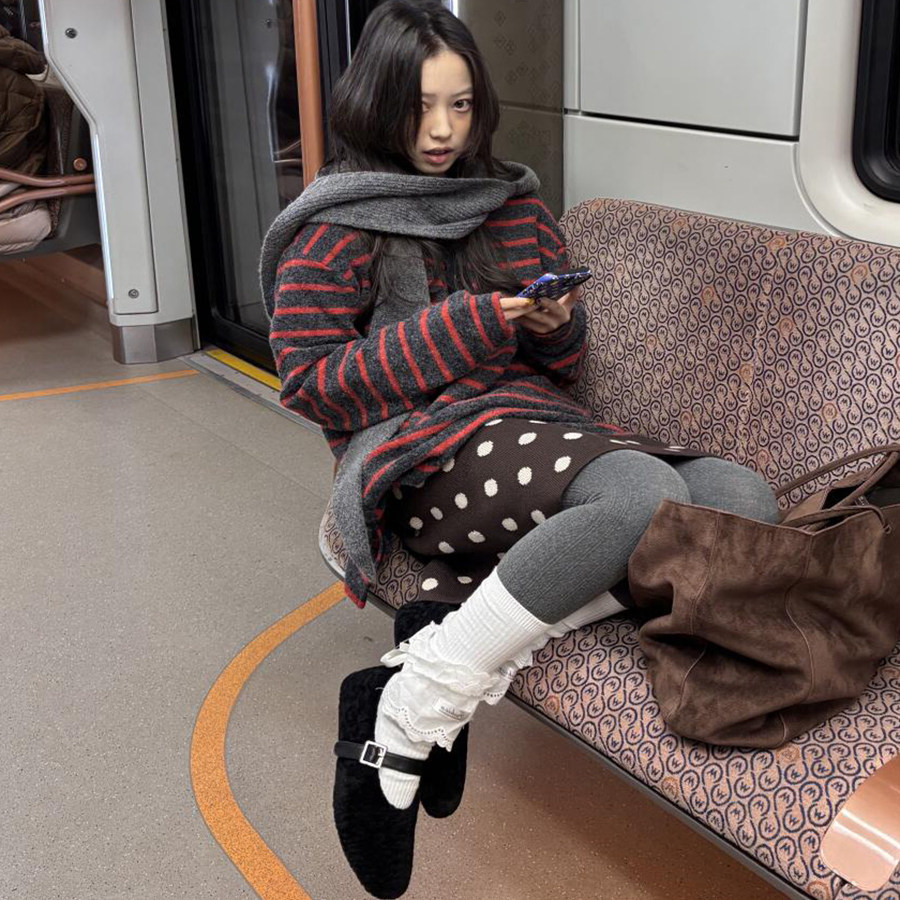 「正确版 可爱波点毛织半身裙提花半裙女毛线针织裙 」韩系秋冬新款