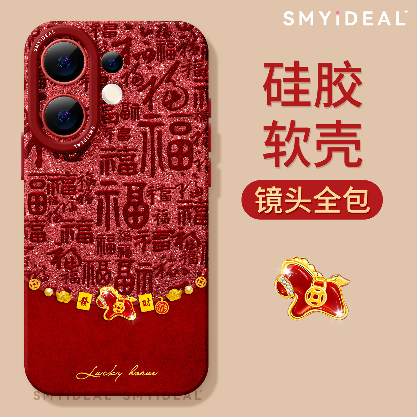 适用vivos30手机壳s30promini新款 s19马年过年s18外壳s16女s15布绒爱心s12 s30红色vivo系列s30pro新年s20新品