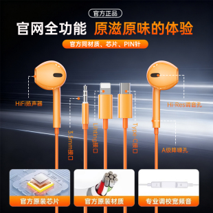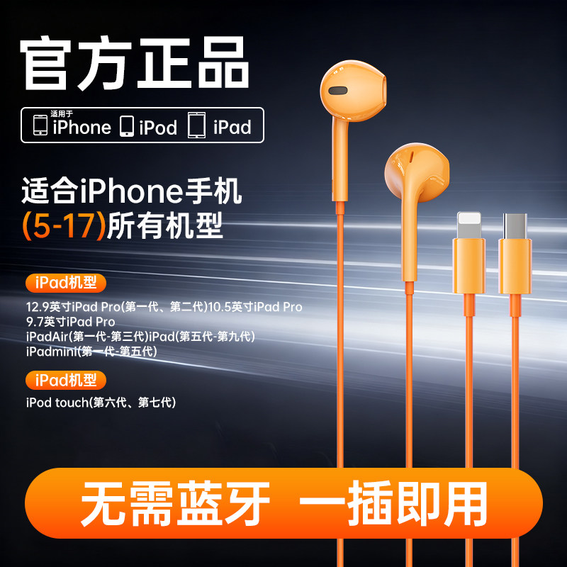 ipad 有线耳机适用苹果17typec圆孔iPhone16半入耳式 集语原装 正品