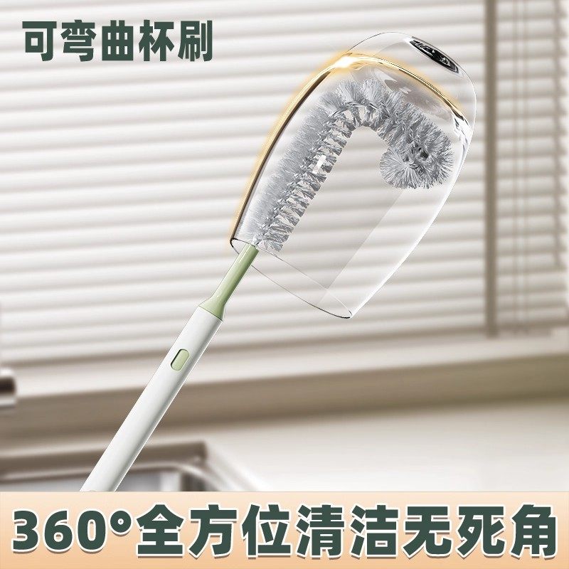 长柄洗杯刷硅胶水杯折弯无死角奶瓶杯底专用神器家用多功能清洁刷