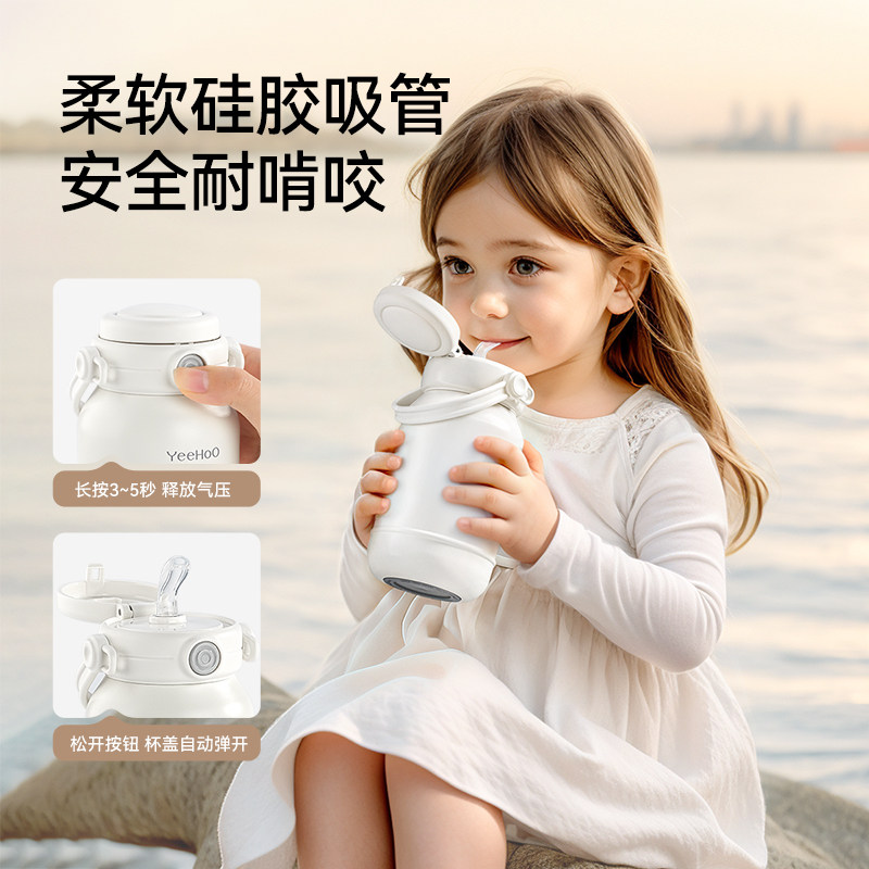 奇古堂儿童保温杯小学生上学专用吸管水杯子2025新款 女高颜值水壶