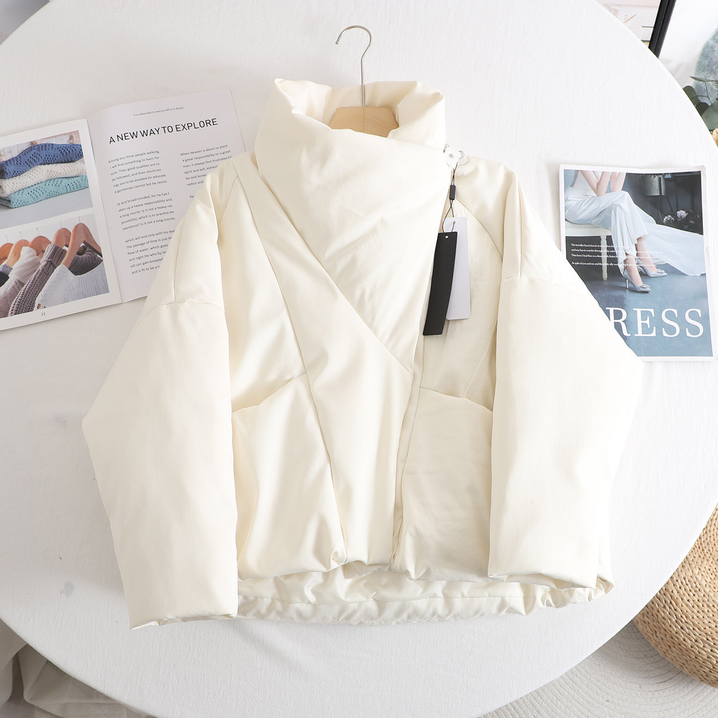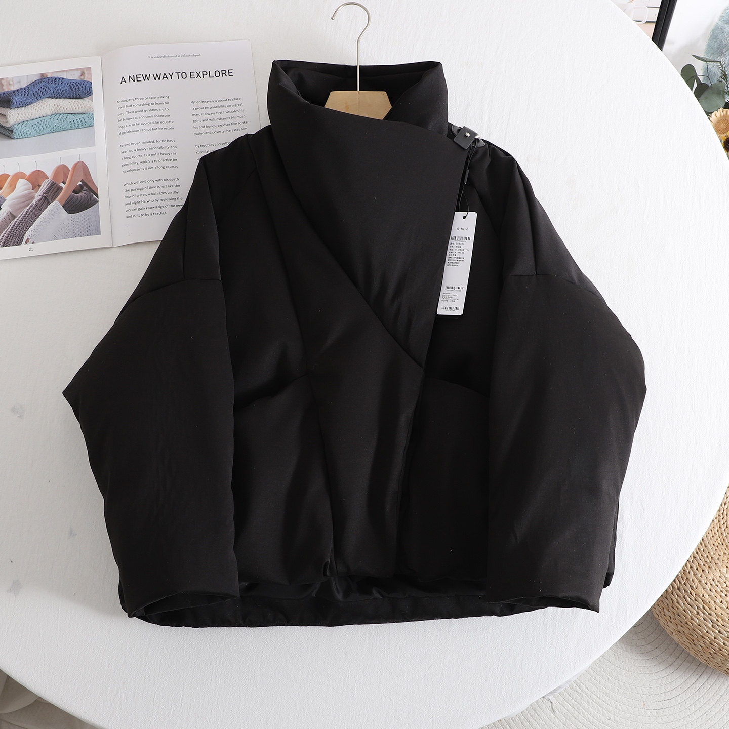 艾 设计感高腰显瘦小众斜肩保暖羽绒服女2025秋冬立领外套 韩版