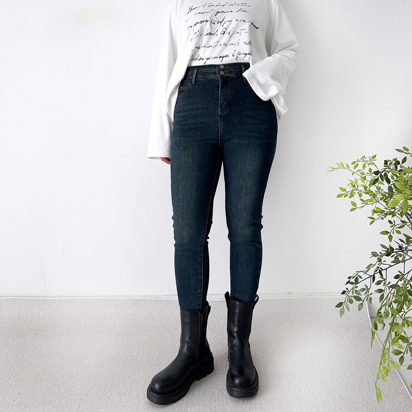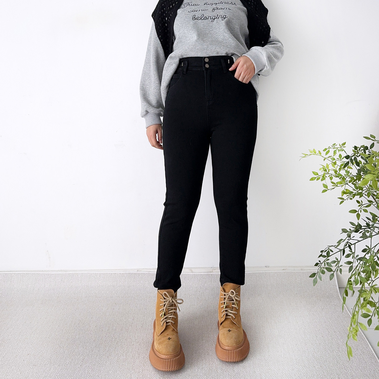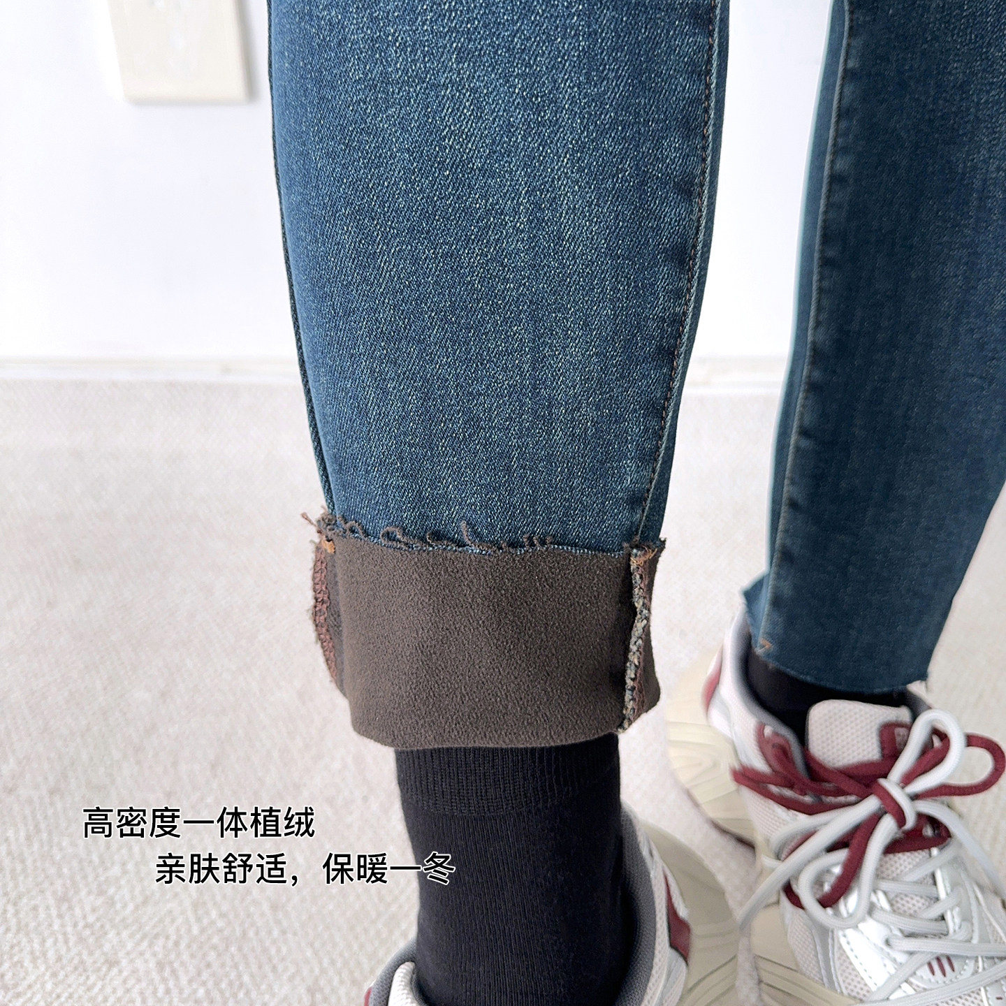 大码 胖MM高腰裤 加绒铅笔牛仔裤 高弹显瘦小脚裤 子 女冬季 大爽家
