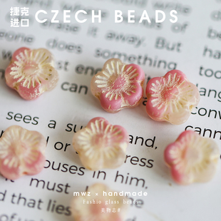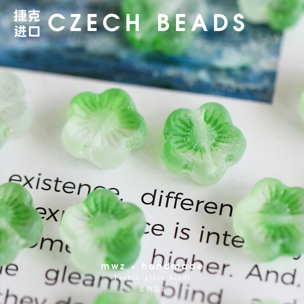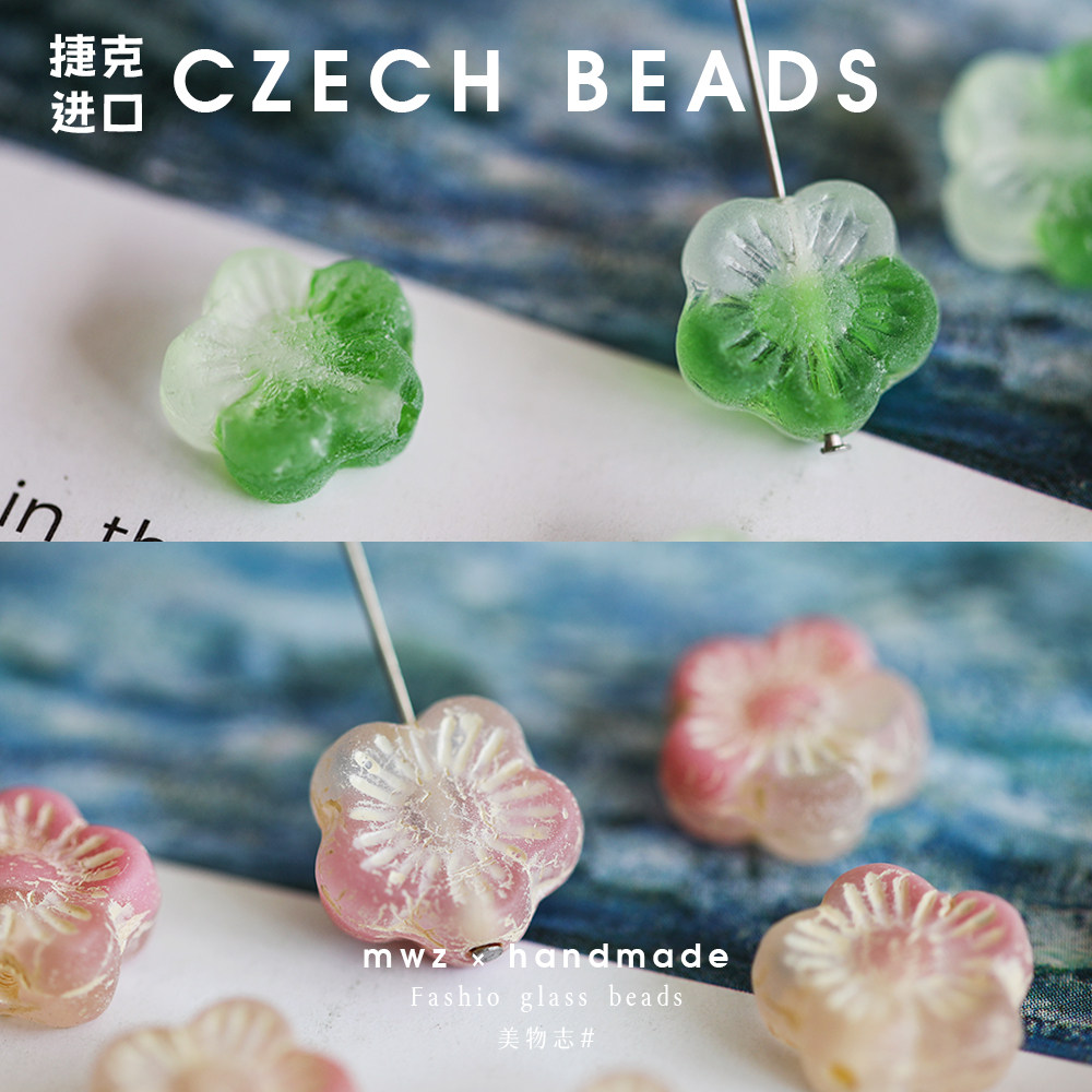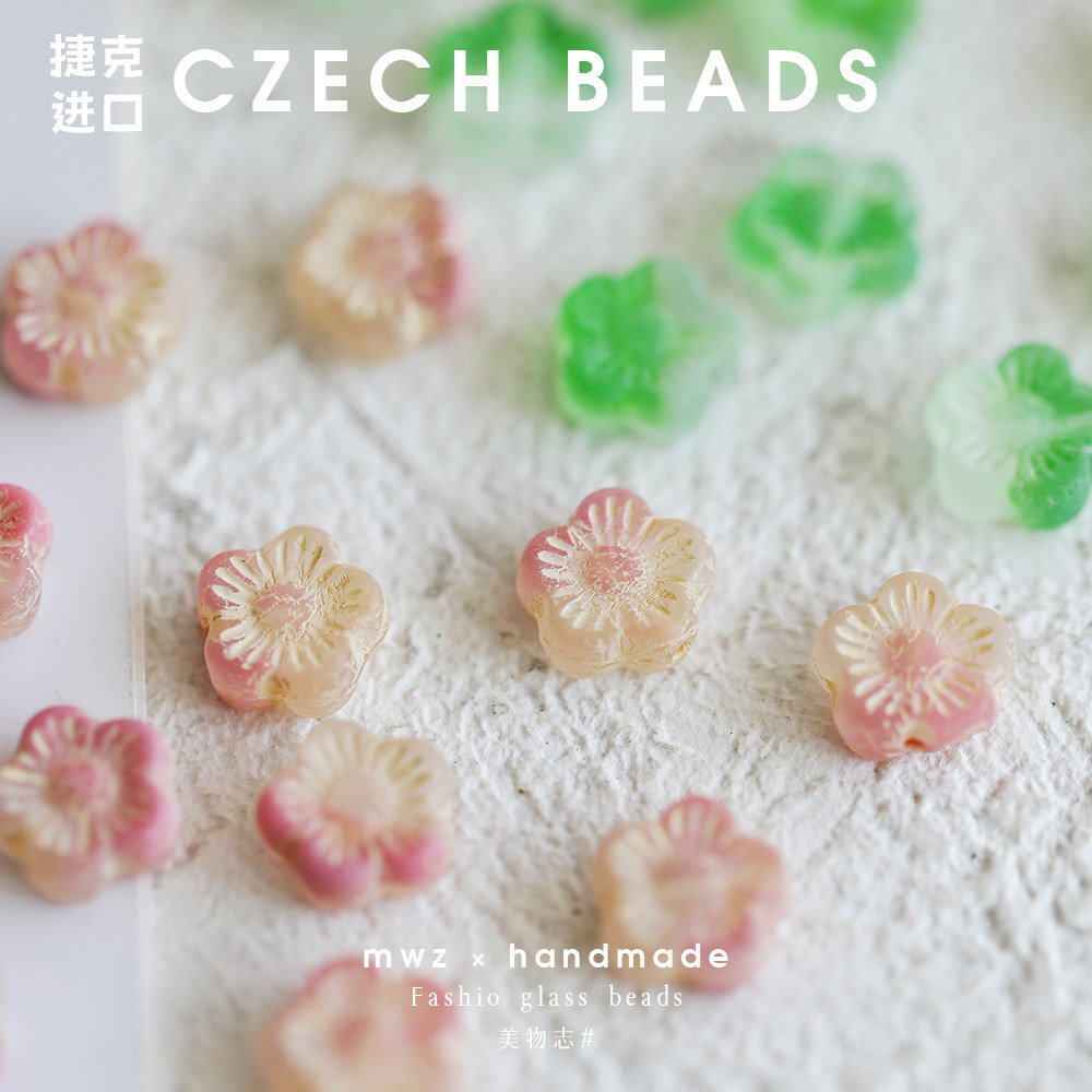 进口捷克压制五瓣花果冻粉绿梅花珠10mm 手工串珠DIY散珠材料配件