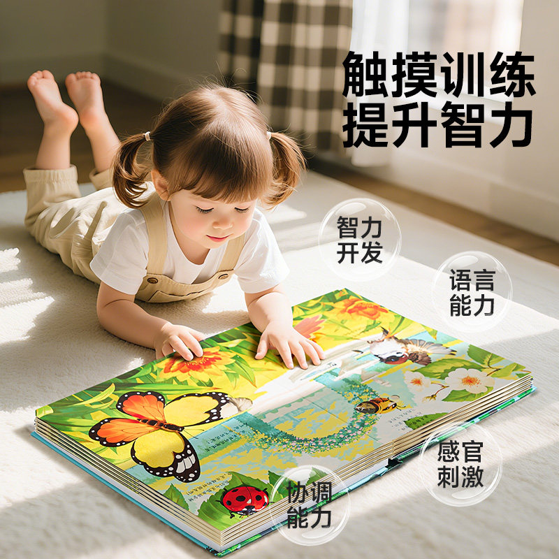 2岁触觉启蒙感官刺激认知婴幼儿触感学习益智玩具绘本立体书地板撕不烂儿童翻翻书籍洞洞 早教有声书0 宝宝 第一本触摸书会说话
