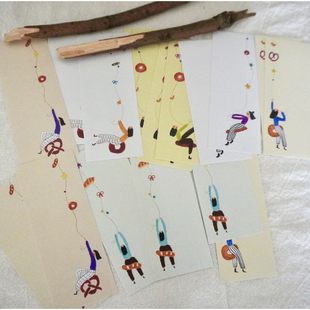 异形复古手绘便签小小人 手帐 翻翻看盐系卡通小人 青青便签 元