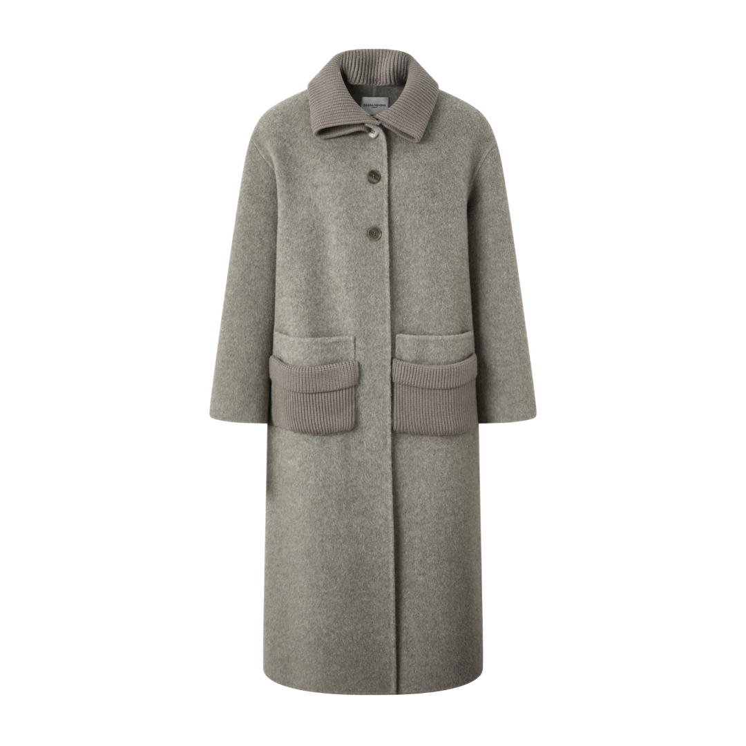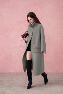 情侣带垫肩加厚风衣外套老钱风 双面羊毛呢子大衣男中长款 储格