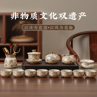 茶具套装 家用汝窑功夫轻奢高档泡茶壶茶杯干泡盘喝茶整套 2025新款