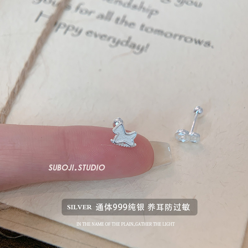 999纯银耳棒男养耳洞耳棍简约耳钉女足银防堵针睡觉免摘银针耳饰