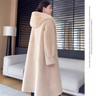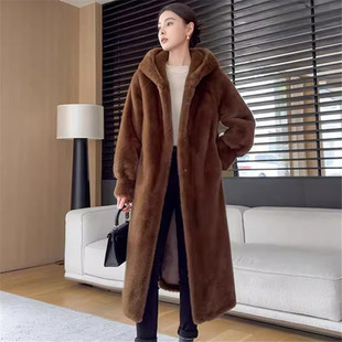 中老年妈妈装 皮草外套女冬中长款 水貂绒皮毛一体大衣连帽过膝长款