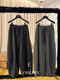 深灰色微喇休闲裤 潮 女2025秋冬加绒胖妹妹mm高腰弹力显瘦运动卫裤