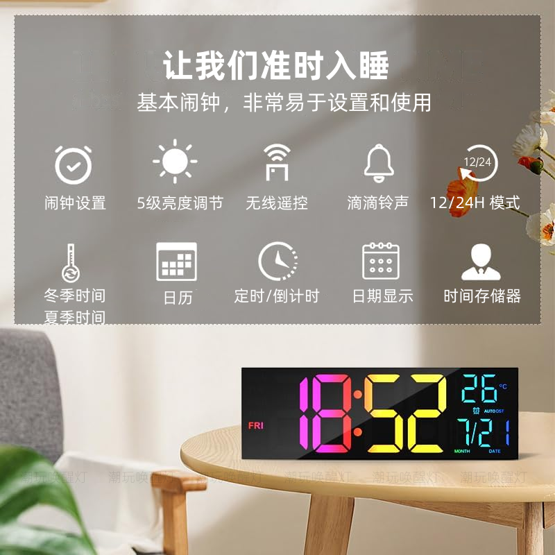 万年历挂钟客厅家用创意闹钟夜光台式 电子时钟 数字日历电子钟新款
