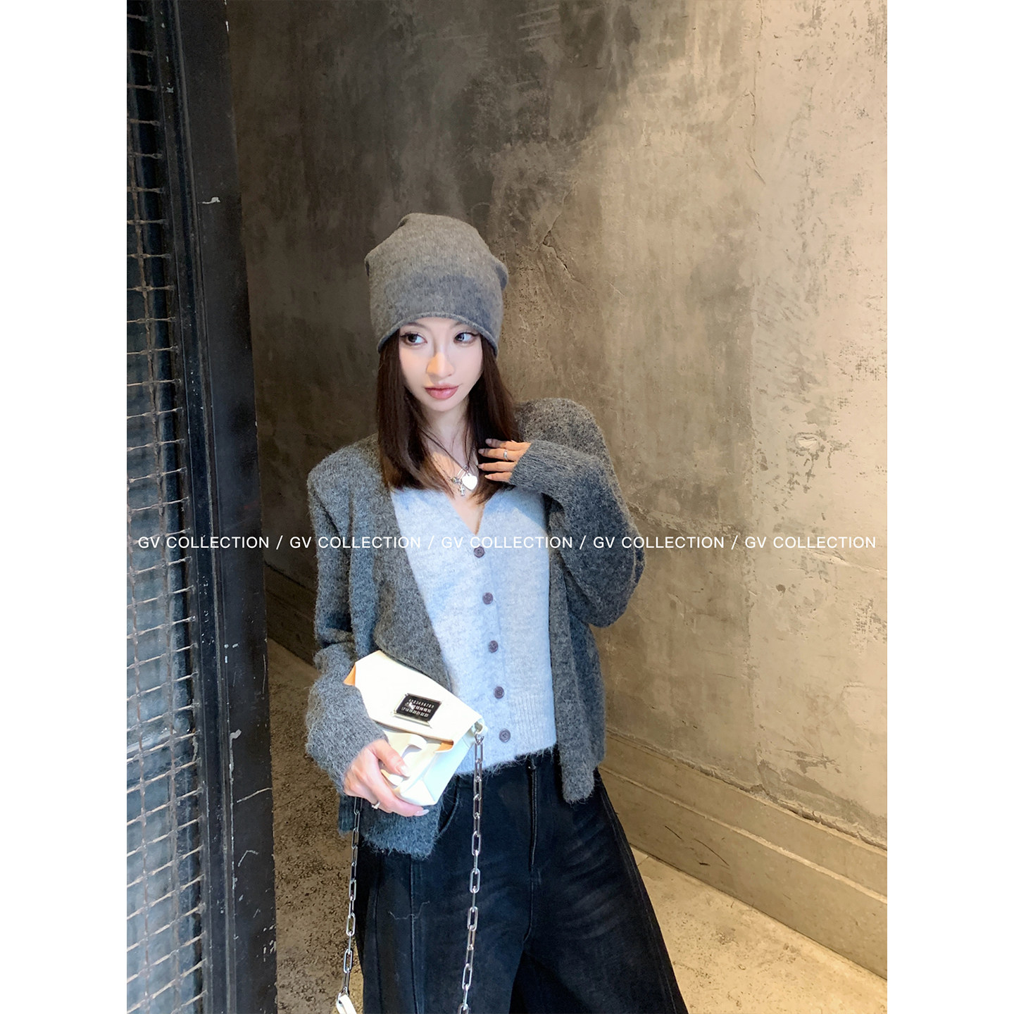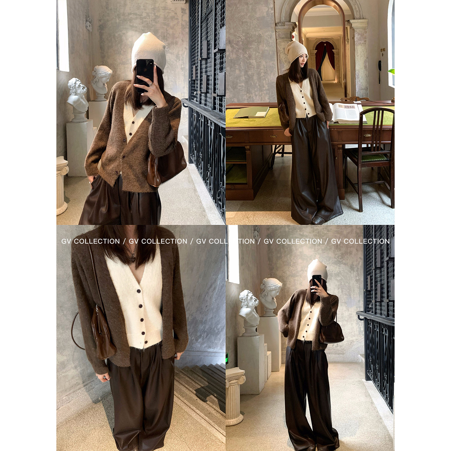 秋冬新款 羊毛撞色假两件上衣开衫 百搭保暖女 智系日常 GV大白哥