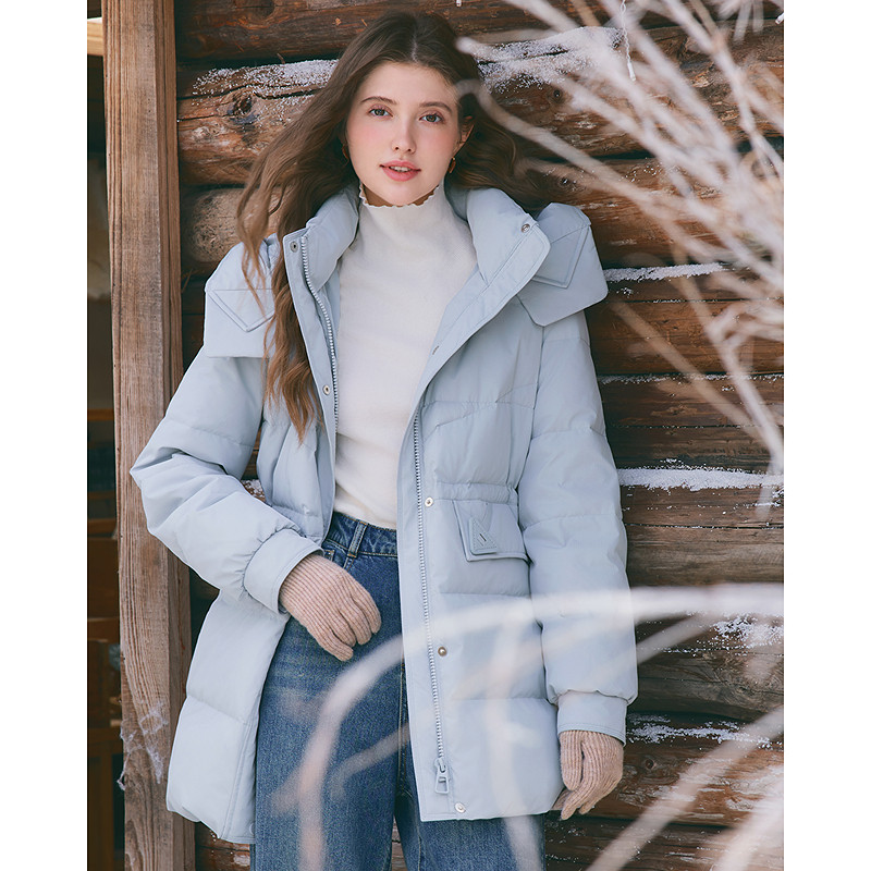 betu百图抽绳收腰连帽羽绒服女2025年冬季 加厚保暖外套大衣 新款