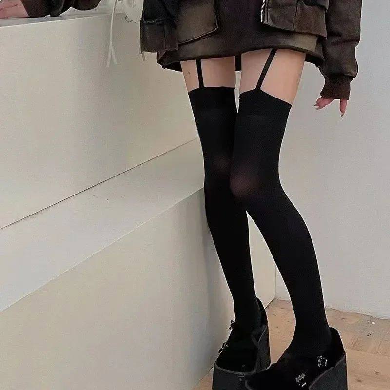抵达一楼黑色过膝袜天鹅绒防滑高筒袜JK丝袜长筒袜显瘦袜子大腿袜