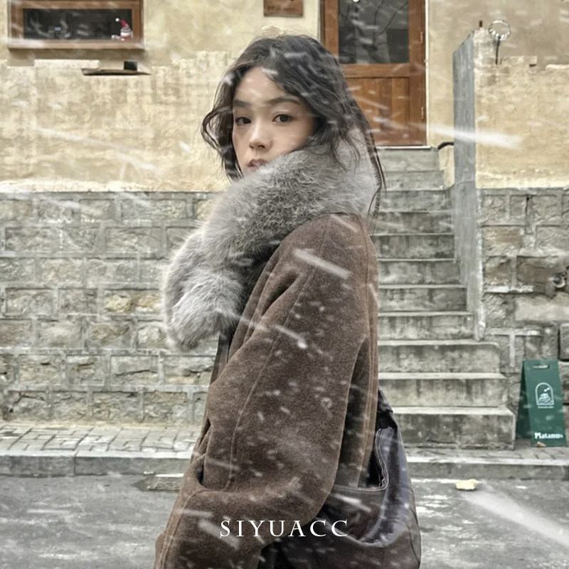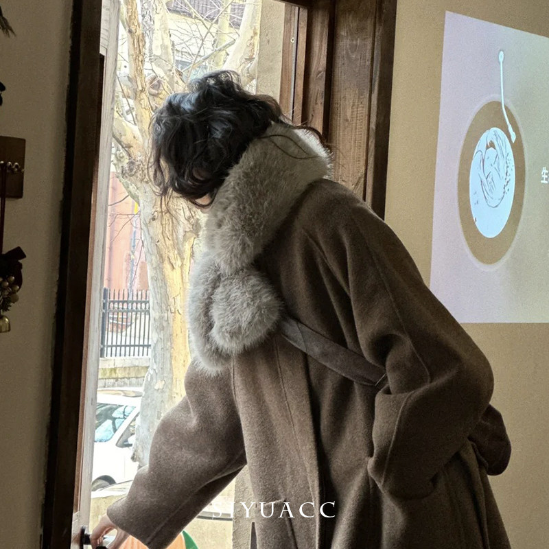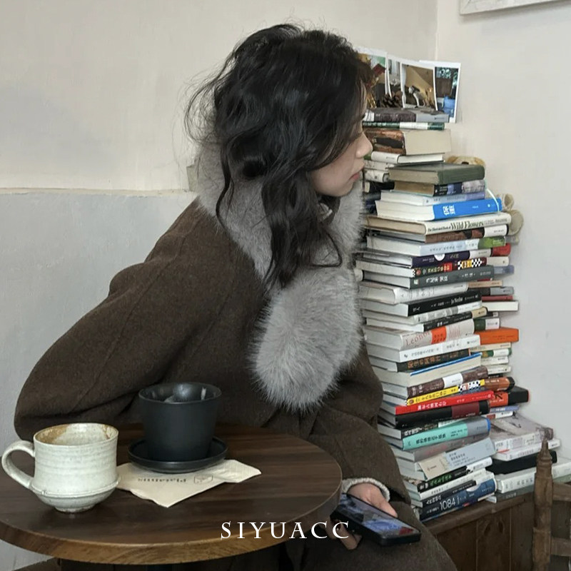 韩版 仿狐狸毛皮草高级感领饰保暖加厚毛领围脖 灰色毛绒围巾女冬季