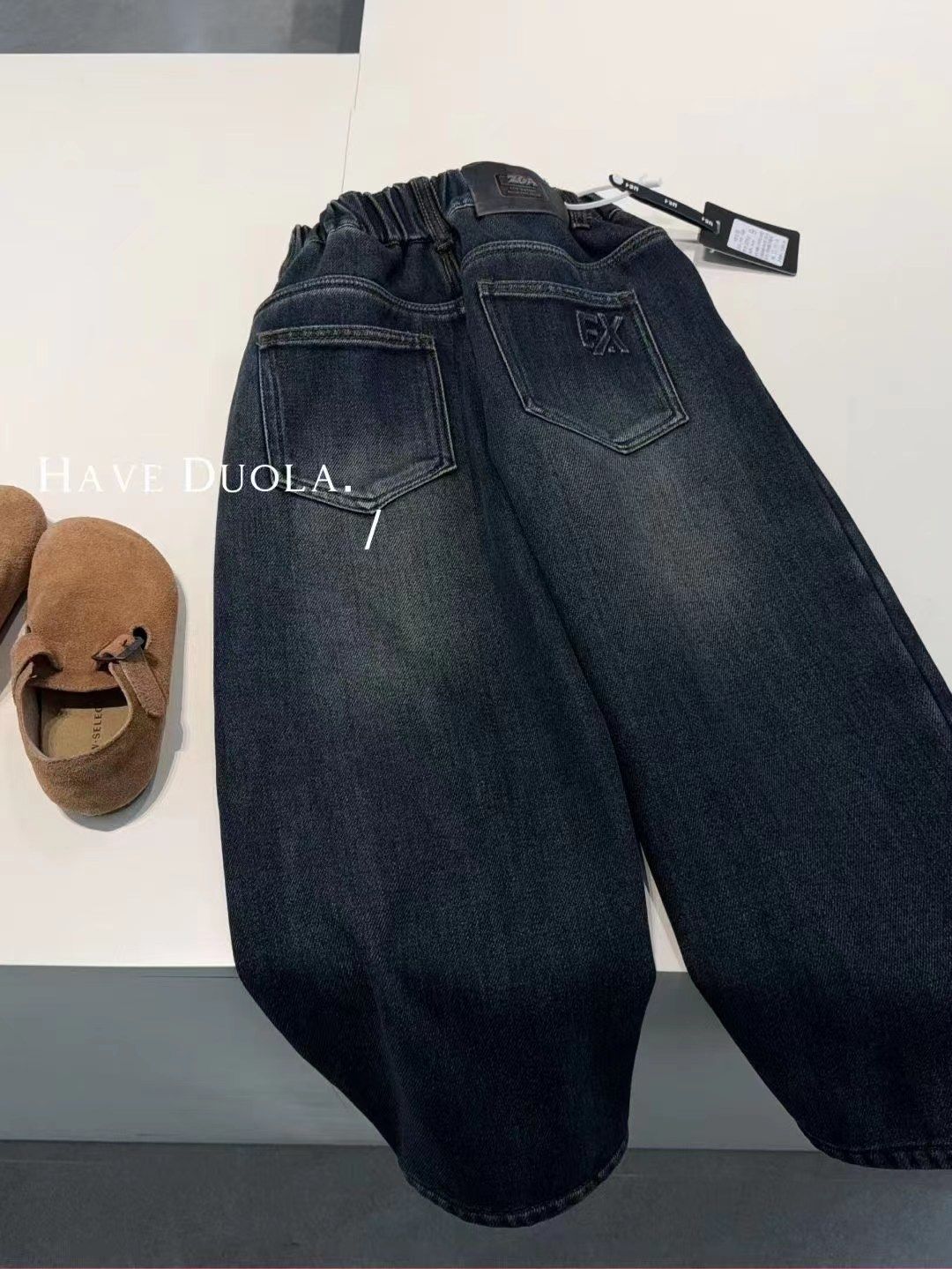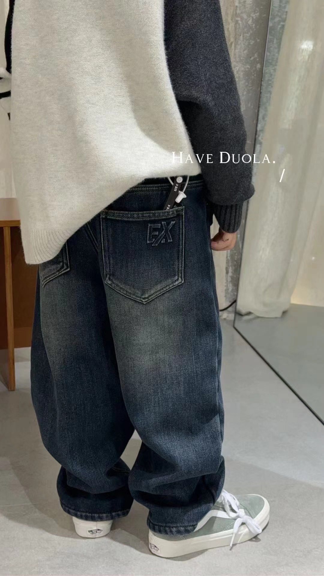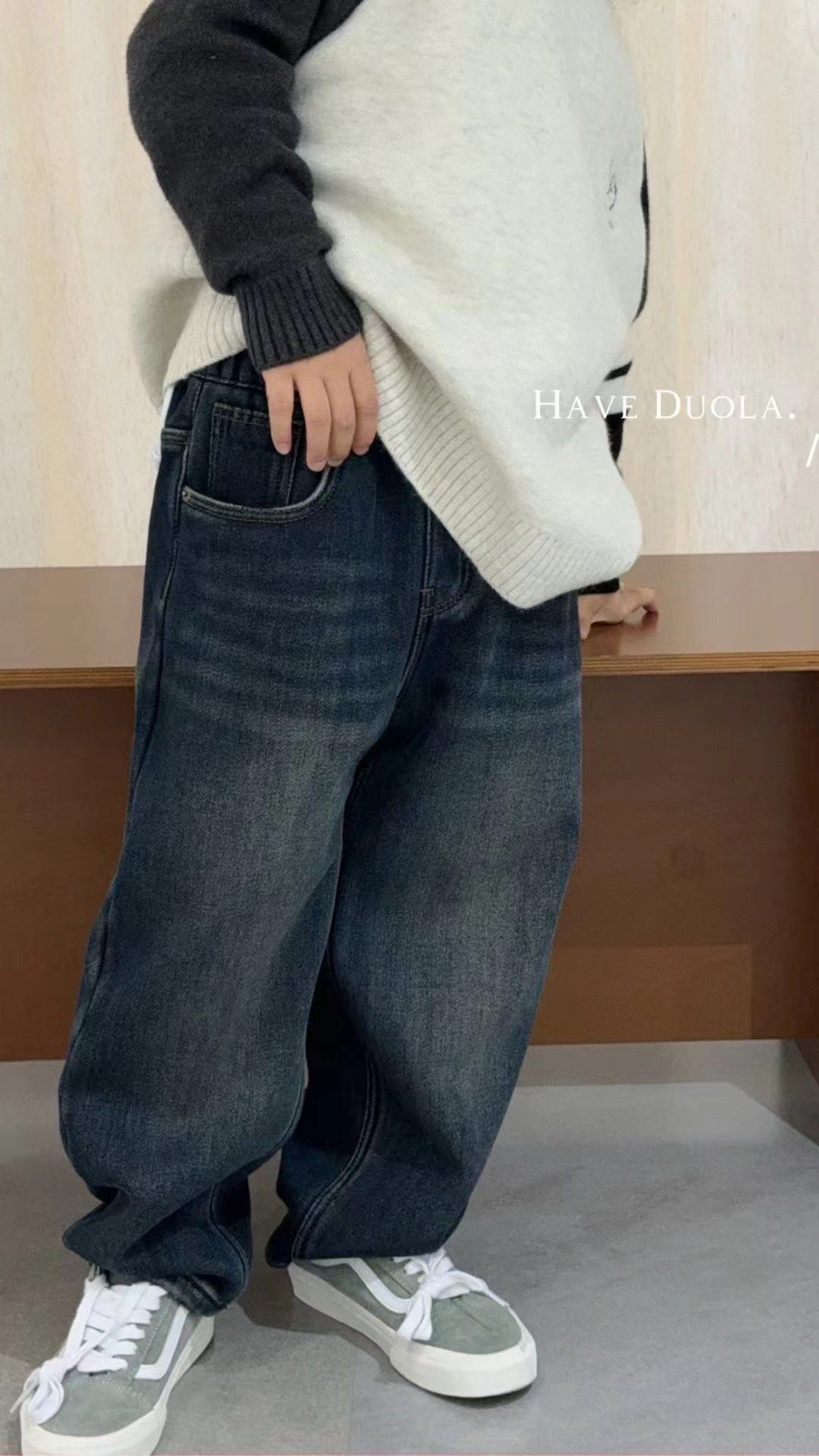 中大儿童加绒加厚宽松直筒老爹裤 牛仔裤 子潮 新款 哈比诺男童25冬季
