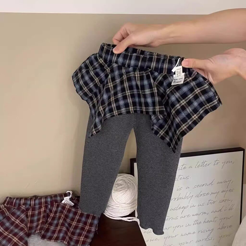 子儿童加绒裤 女宝宝格子屁帘假两件裤 裙秋冬加绒弹力打底裤 女童裤