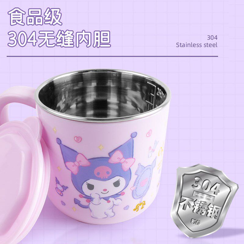 酷洛米牛奶杯宝宝l喝水杯防摔儿童水杯家用吸管杯子不锈钢学饮杯